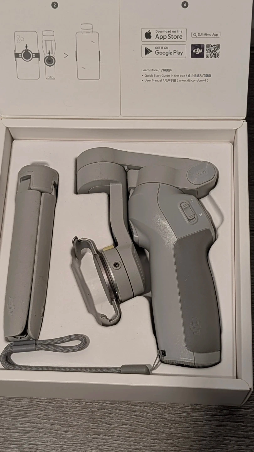 This DJI OM 4 is a smartphone gimbal stabilizer. It's designed to help you capture smooth, stable video footage. It comes with the main gimbal unit and a small tripod. Everything inbox 📥 included
