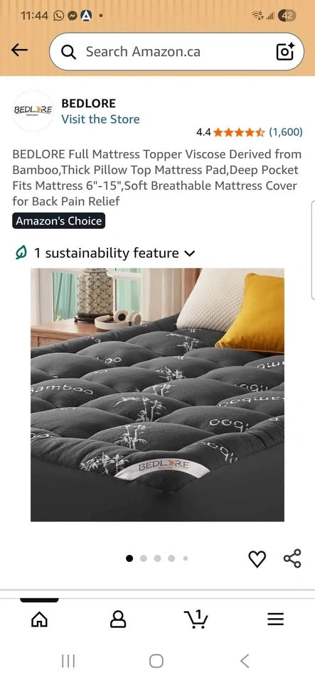 Buy & SellBrand New BEDLORE Full Mattress TopperBrand New BEDLORE Full Mattress Topper$40Still in its original package. Pet free and smoke free home.WHERE TO MEETCheck LocationView MapSELLERberylHuron S402 reviews0 chats·0 favorites·10 viewsSEND CHAT TO SELLERHi beryl! I’m interested in your listing.Hi beryl! I’m interested in your listing.Get the Karrot app to chatSign In to chat