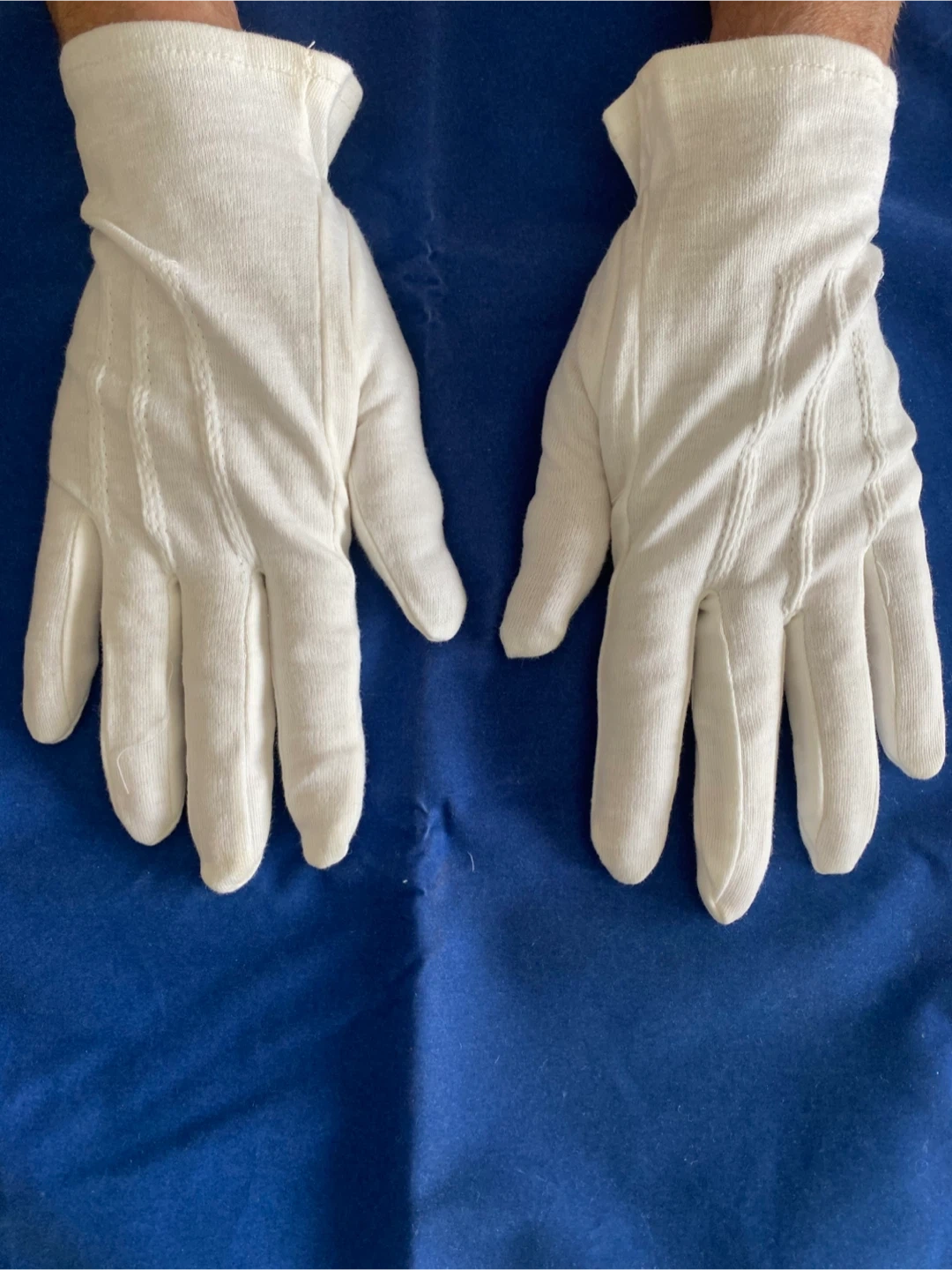 Brand new White cotton gloves. A practical choice for various uses. They're made of soft cotton material. Great for formal events or light handling tasks.