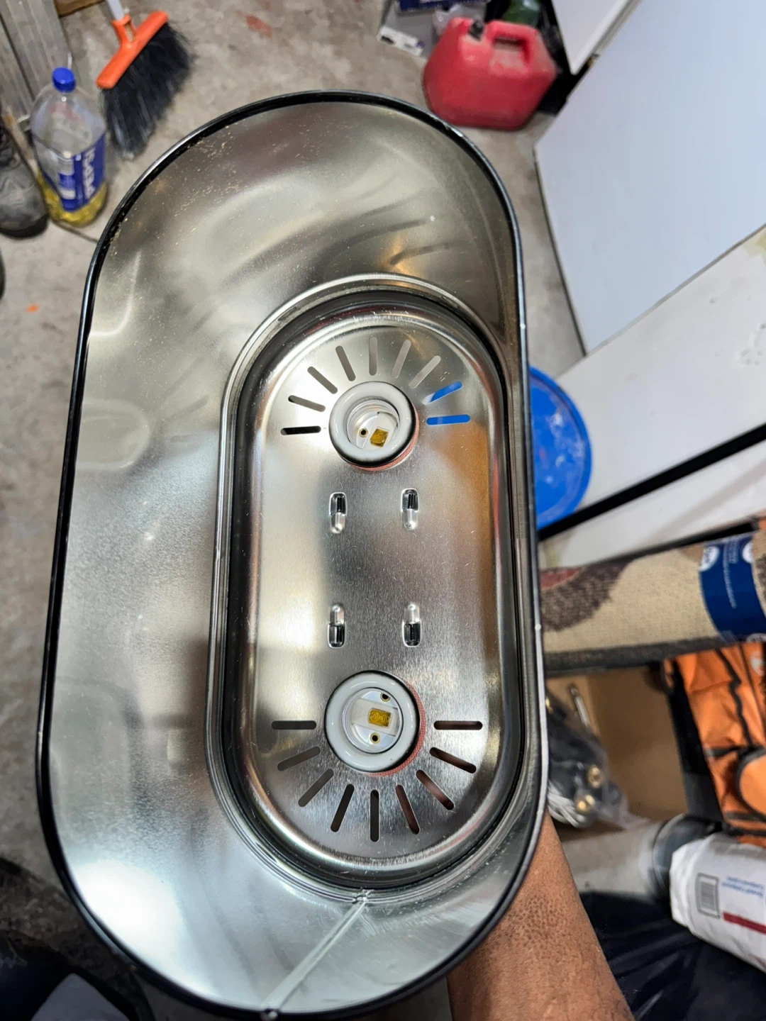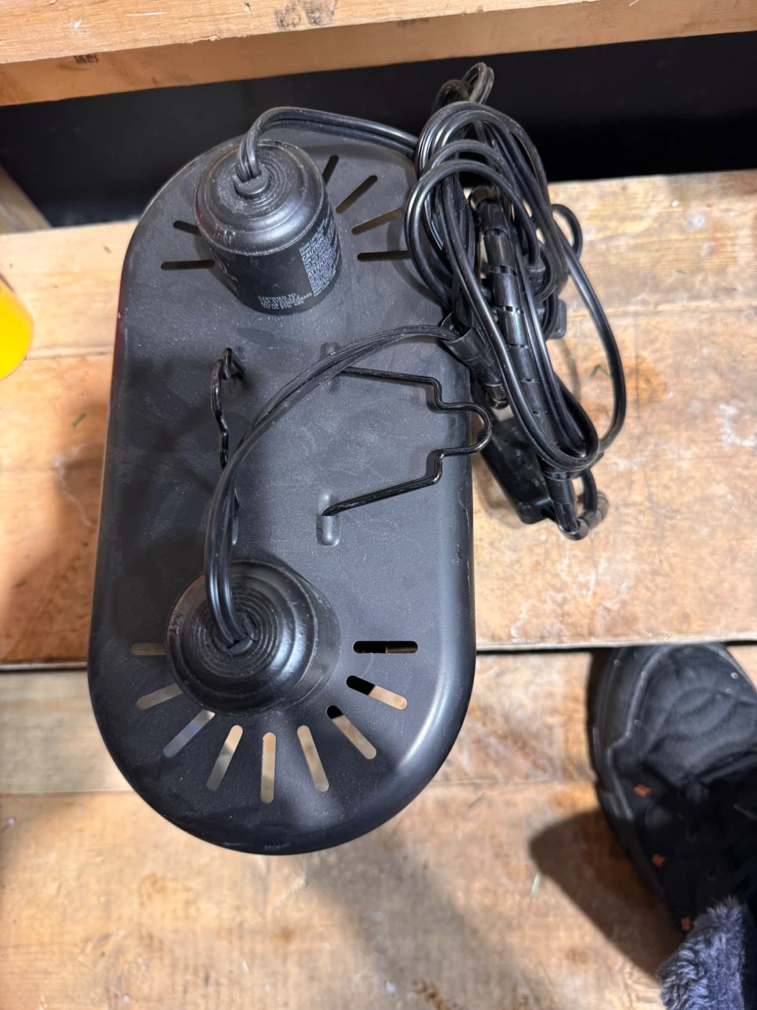 This is a dual heat lamp fixture with two bulb sockets. It comes with one red heat bulb and one fluorescent bulb. It's made of durable metal and has a sturdy cord for use. Perfect for providing targeted heat!