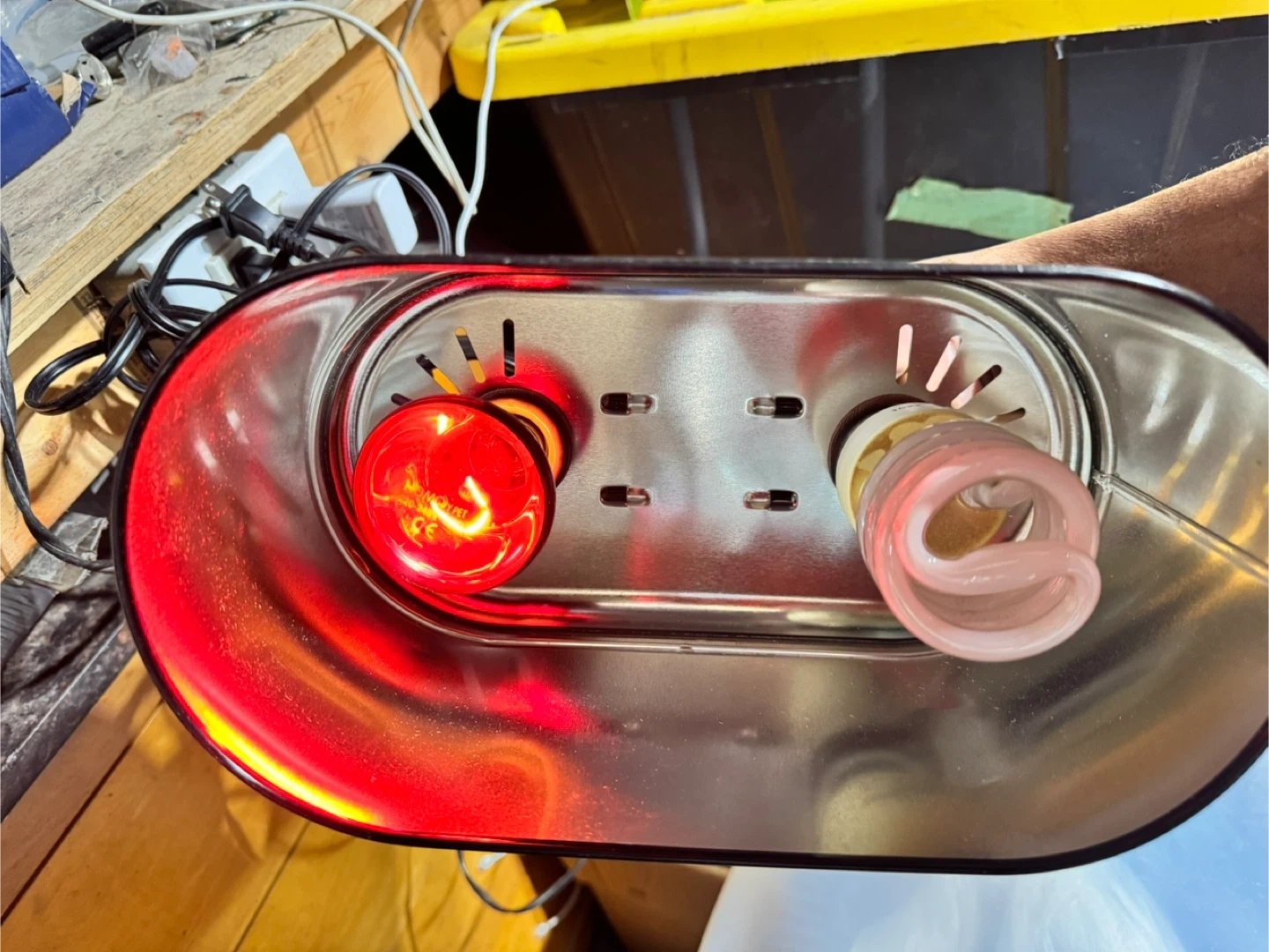 This is a dual heat lamp fixture with two bulb sockets. It comes with one red heat bulb and one fluorescent bulb. It's made of durable metal and has a sturdy cord for use. Perfect for providing targeted heat!