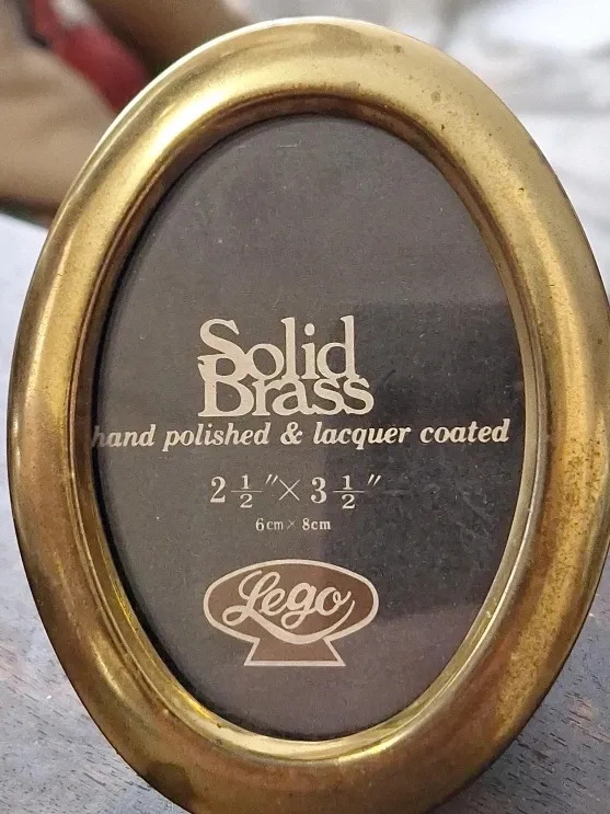 This is a Lego brand oval photo frame. It's made of solid brass, hand polished and lacquer coated. Fits photos that are 2 1/2" by 3 1/2" (6cm x 8cm).