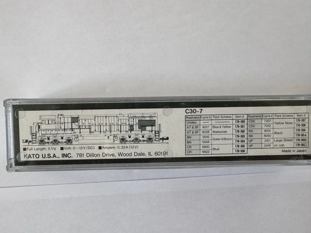 Brand new N Scale Kato GEC 30-7 Santa Fe. This is 100% new, only used for test run. You can pick it up at Markville Mall.