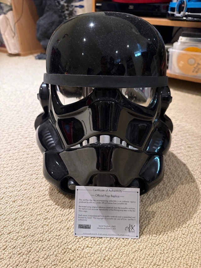 This is a 2014 Limited Edition EFX/Bait Collaboration Shadow Stormtrooper Helmet. It's been kept in a display case and is like new. I'm sad to see it go, as this helmet doesn't come up for sale often. It's very rare! No box. You can pick it up at Markville Mall.