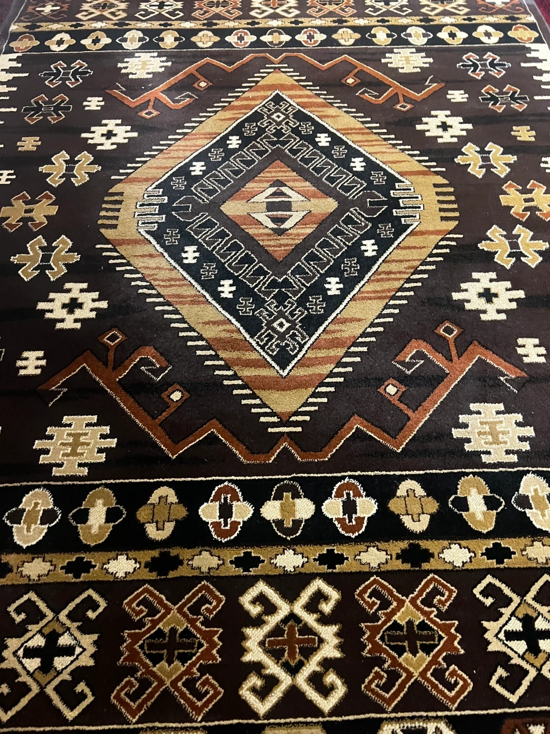 Beautiful 6×9 area rug from Persian Weavers (Ambassador series).woven in Turkey with a high-density construction and rich chocolate brown tones. The tribal-inspired pattern adds warmth and character without overpowering the room.