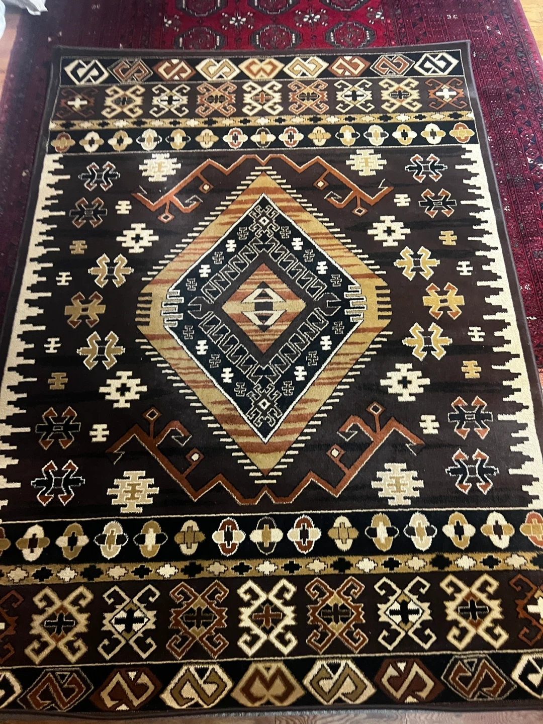 Beautiful 6×9 area rug from Persian Weavers (Ambassador series).woven in Turkey with a high-density construction and rich chocolate brown tones. The tribal-inspired pattern adds warmth and character without overpowering the room.