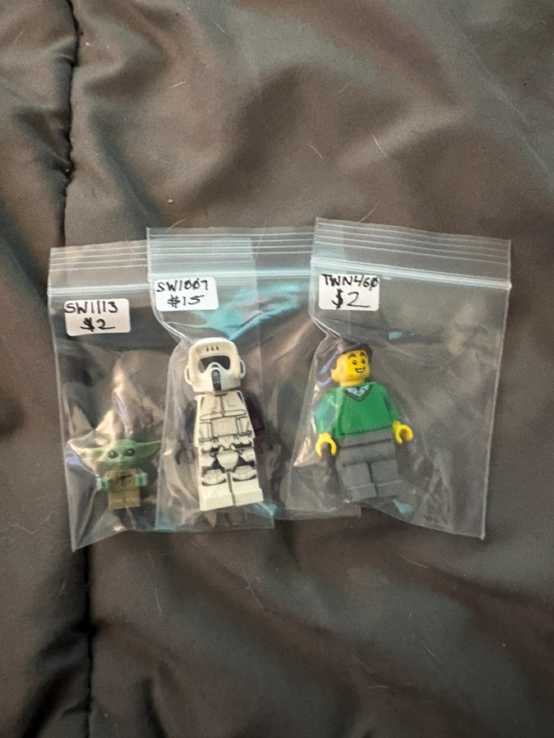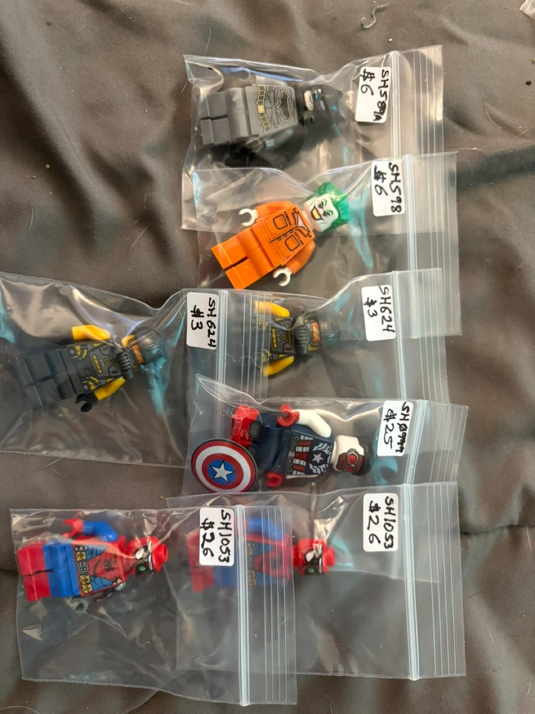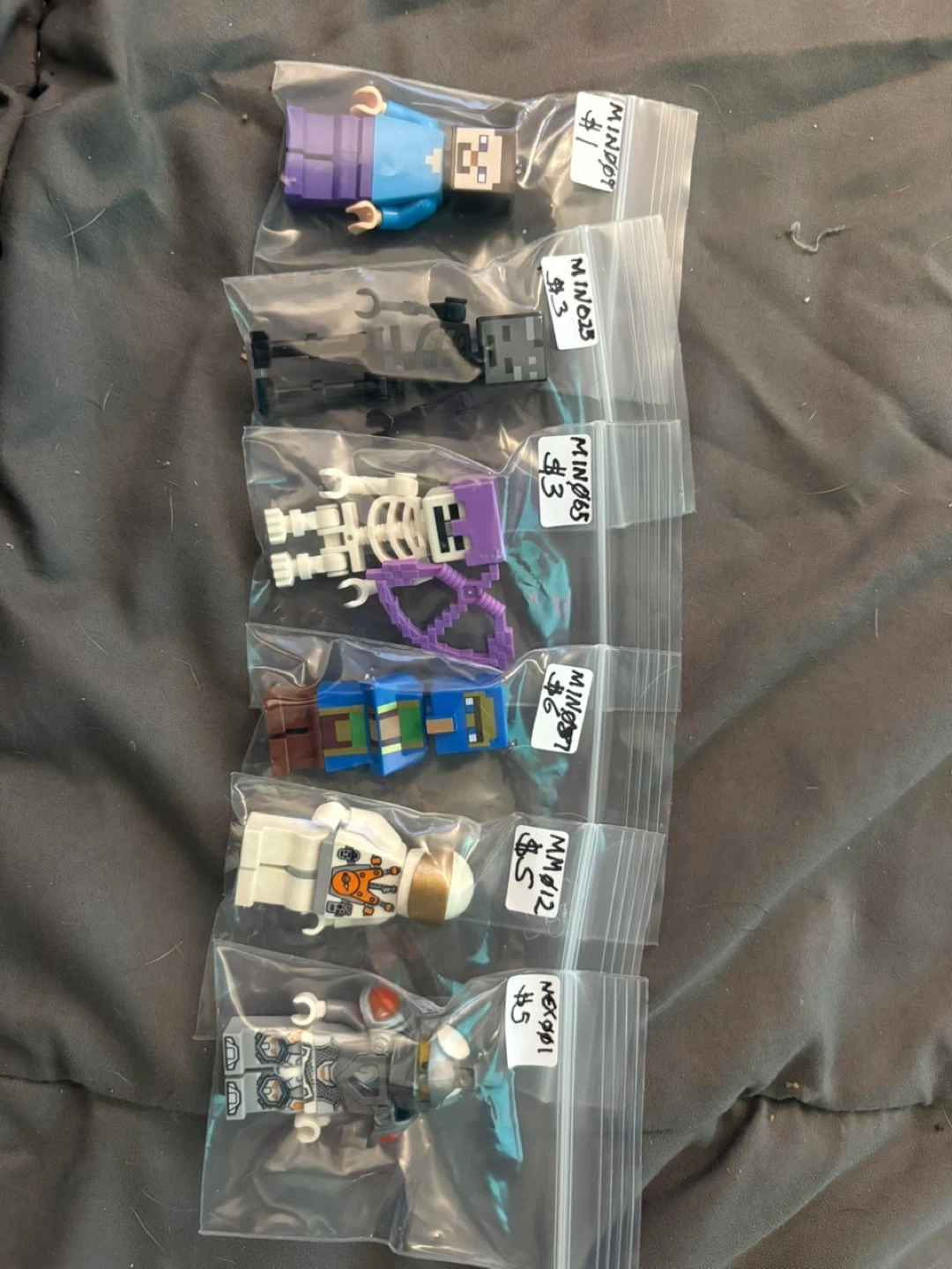 Collection of LEGO minifigures from various series including Ninjago, Minecraft, Harry Potter, and Friends. These are individual figures, each sealed in its own bag. Great for collectors or adding to your LEGO creations!