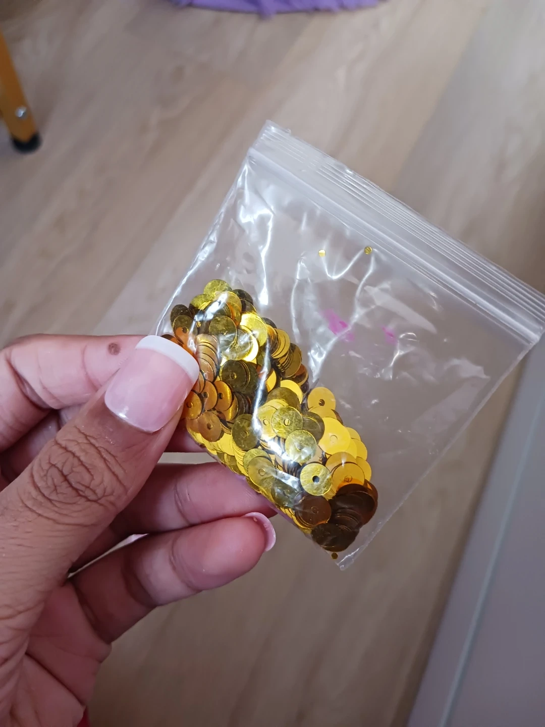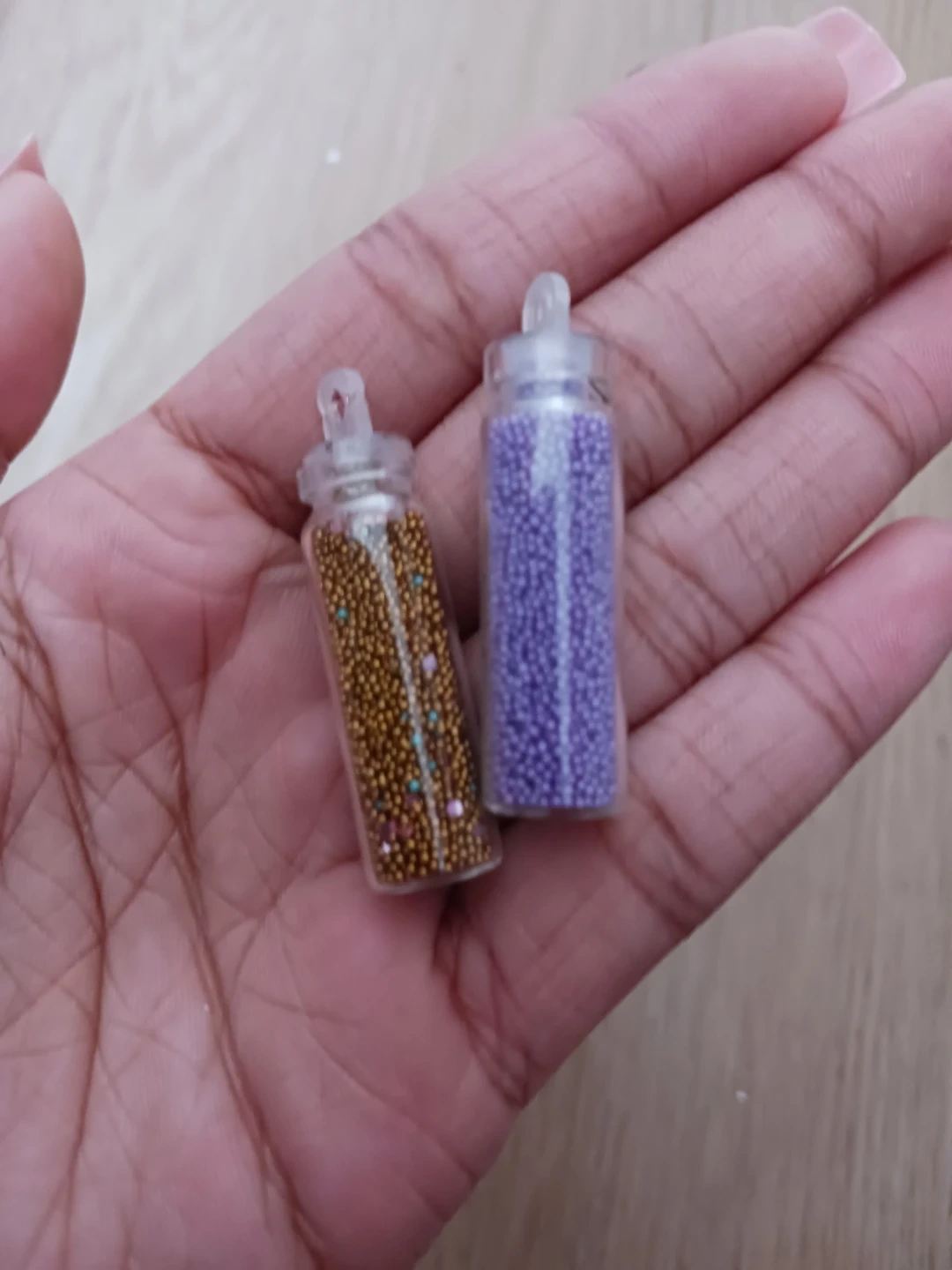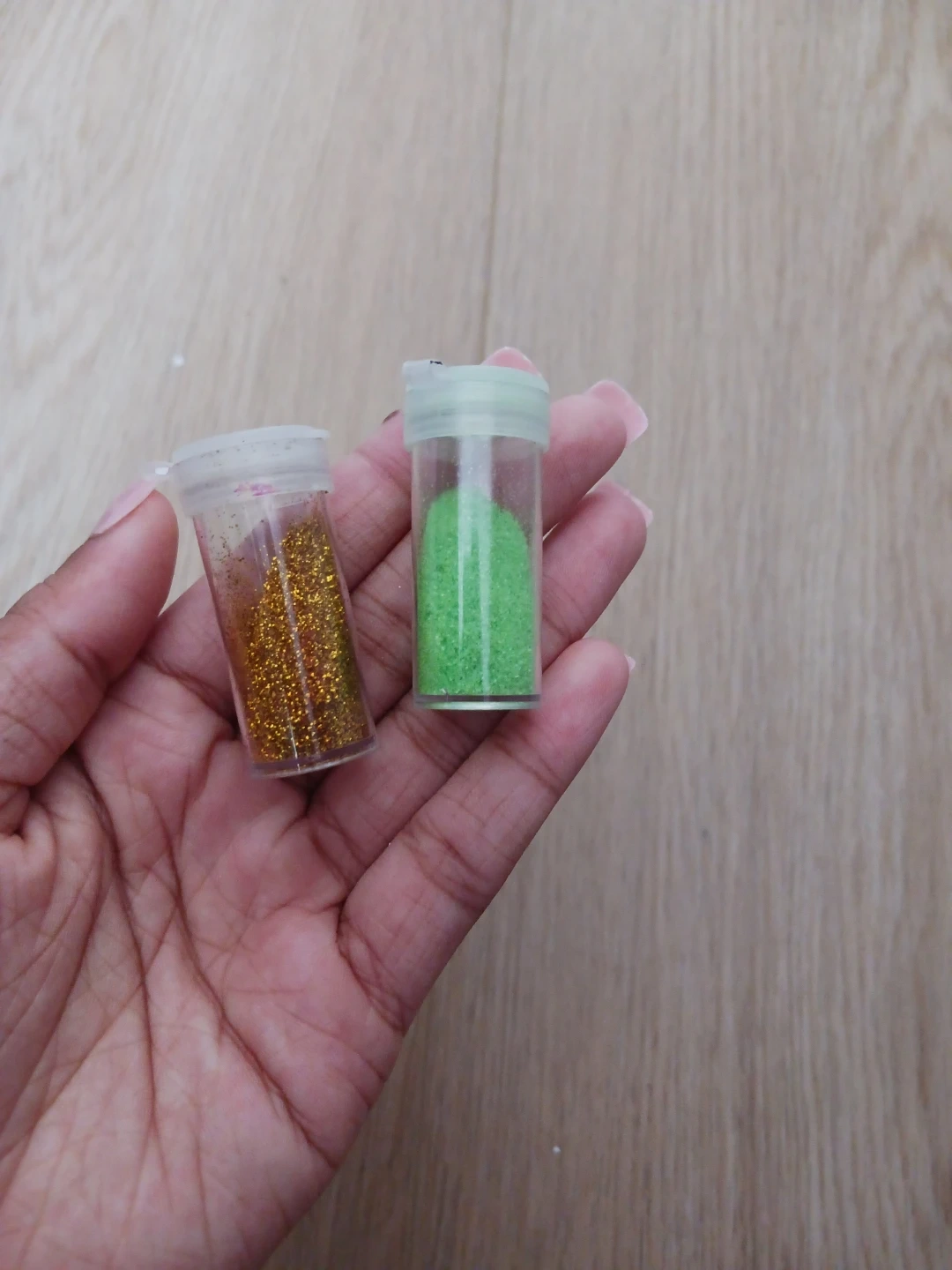 This set includes various small containers and bags filled with glitter, sequins, and small beads. Perfect for crafting and decorating projects! Colors include gold, green, pink, and purple.