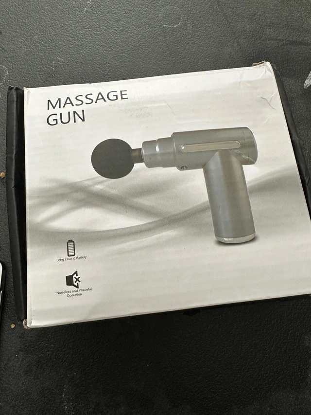 Get ready to relieve those muscle knots with this massage gun. It's a fantastic tool for post-workout recovery or just easing tension after a long day. This item is brand new. Here's what you'll get: Massage gun, Multiple attachment heads, Original box. Looking to unwind? This massage gun might just be your new best friend! And yes, if you're seeing this ad, it's still up for grabs!
