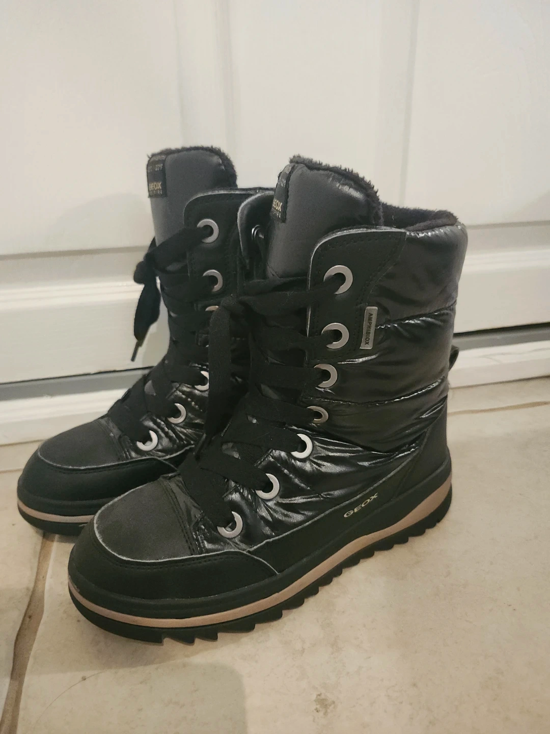 Geox Amphibiox winter boots are designed for cold weather, rated to -30°C / -22°F. They feature a waterproof design and a cozy lining. European size 37, US size 5.