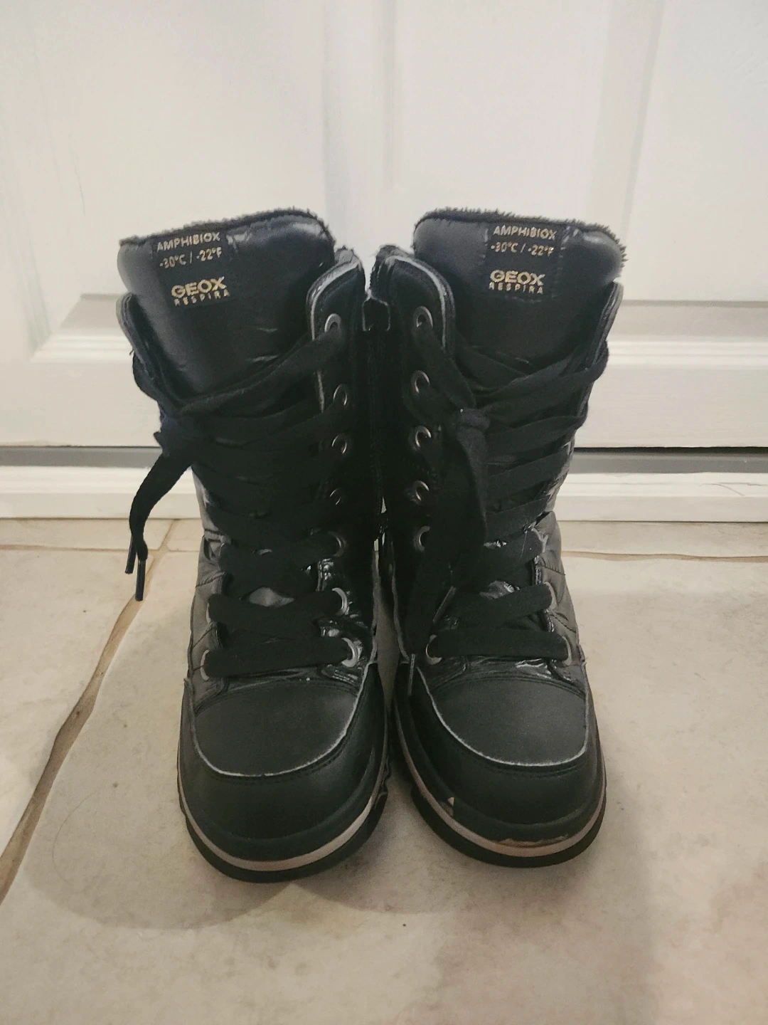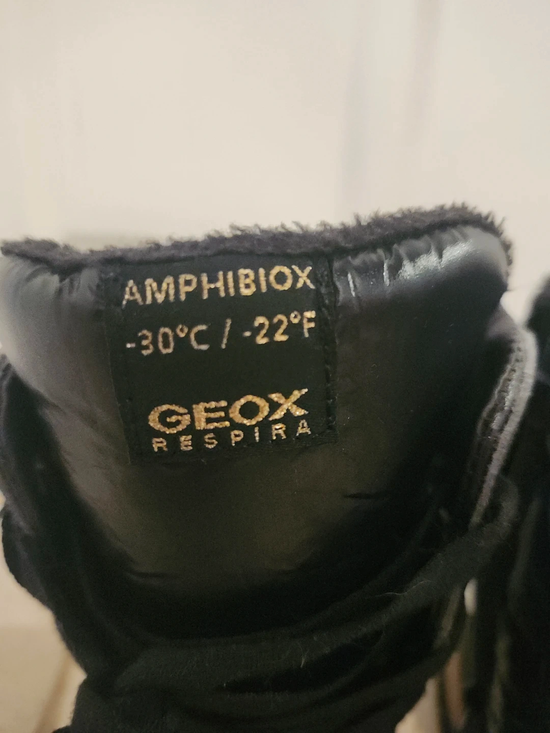 Geox Amphibiox winter boots are designed for cold weather, rated to -30°C / -22°F. They feature a waterproof design and a cozy lining. European size 37, US size 5.