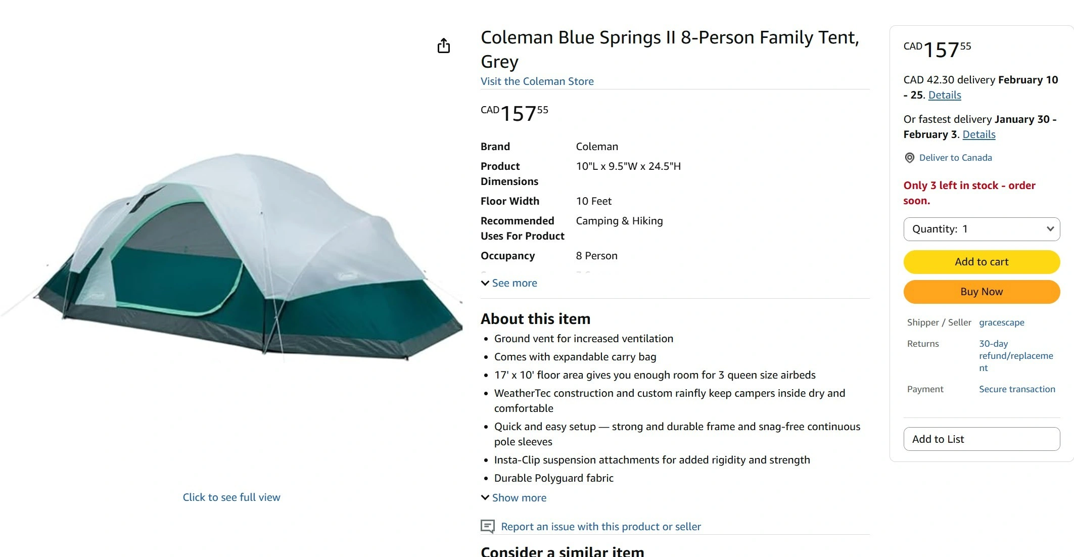 Hi neighbors! 🏕️ We are rehoming our Coleman Blue Springs 8-Person Tent. It’s been a great "home away from home" for our family, but we aren't using it as much lately.