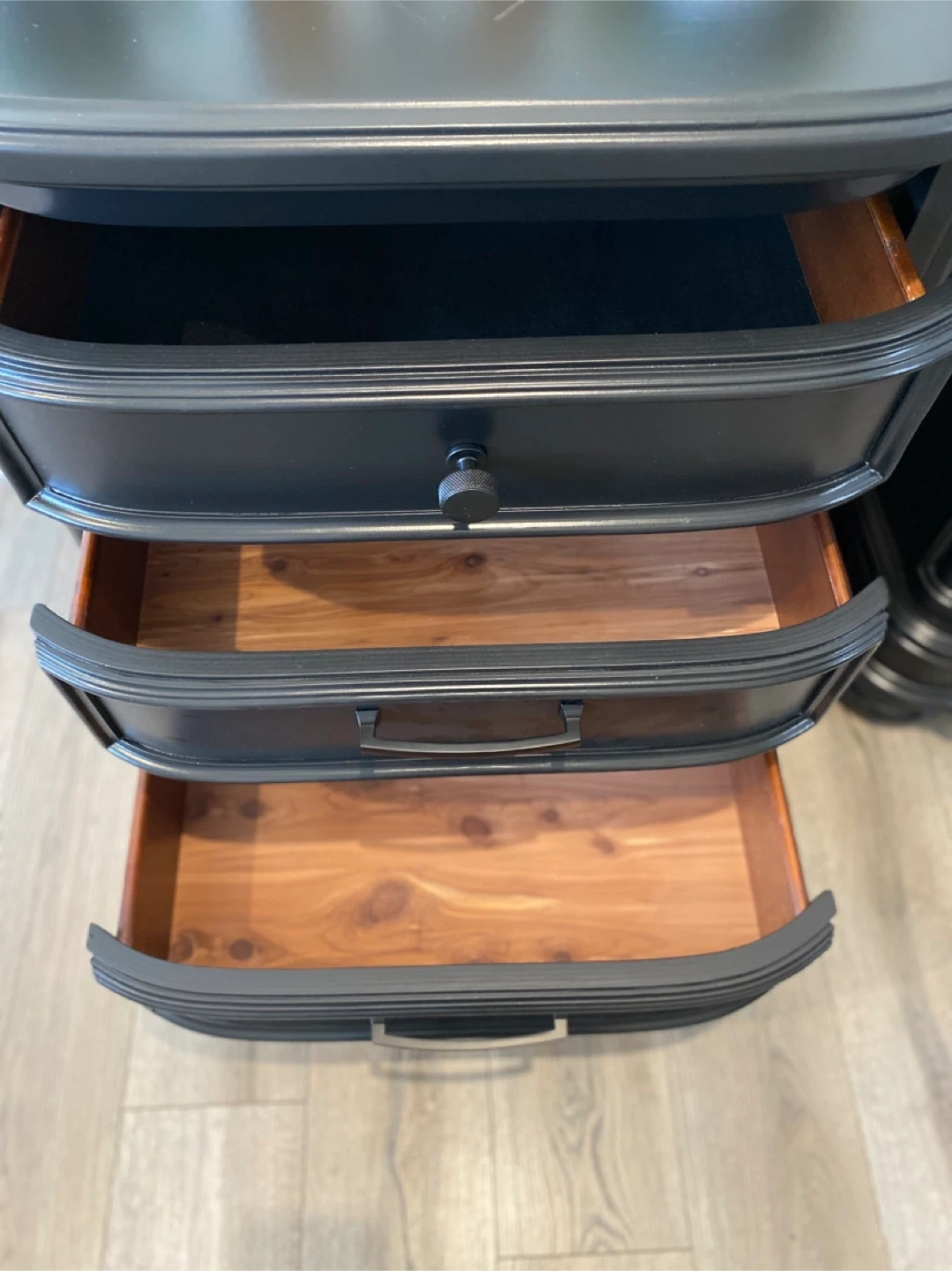 Featuring three easy open/close dovetailed drawers, base drawers are cedar lined!