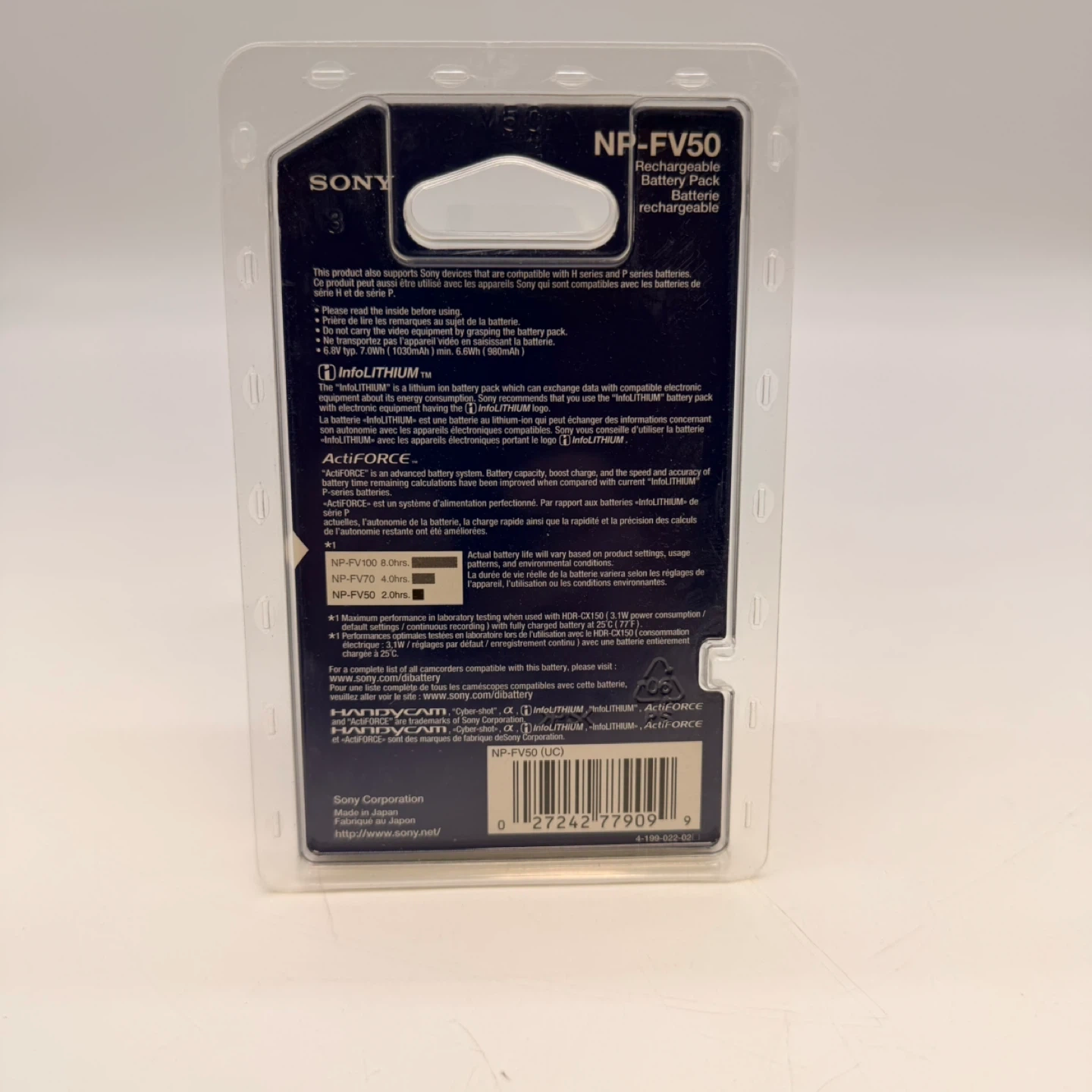 Brand new Sony NP-FV50 rechargeable battery pack.
