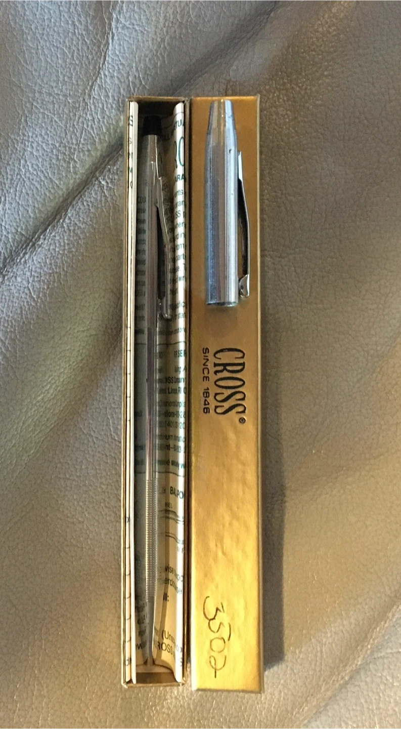 This is a CROSS pen, model 3502, in silver. It comes with its original box and documentation. It's a classic writing instrument that feels great in hand. Perfect for everyday writing or as a gift for someone special!