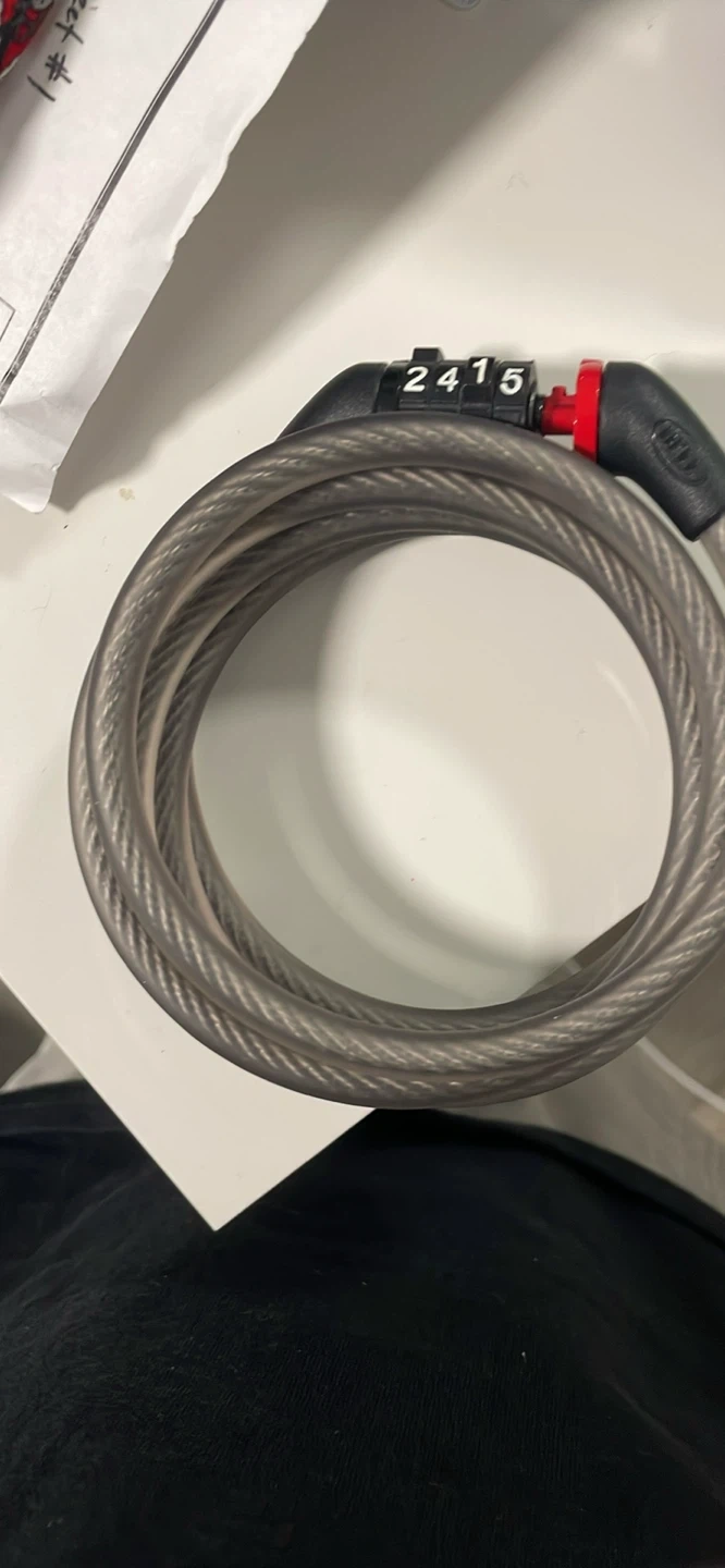 This is a cable lock with a 4-digit combination. It's a great way to secure your bike or other items. The cable is braided steel for durability.