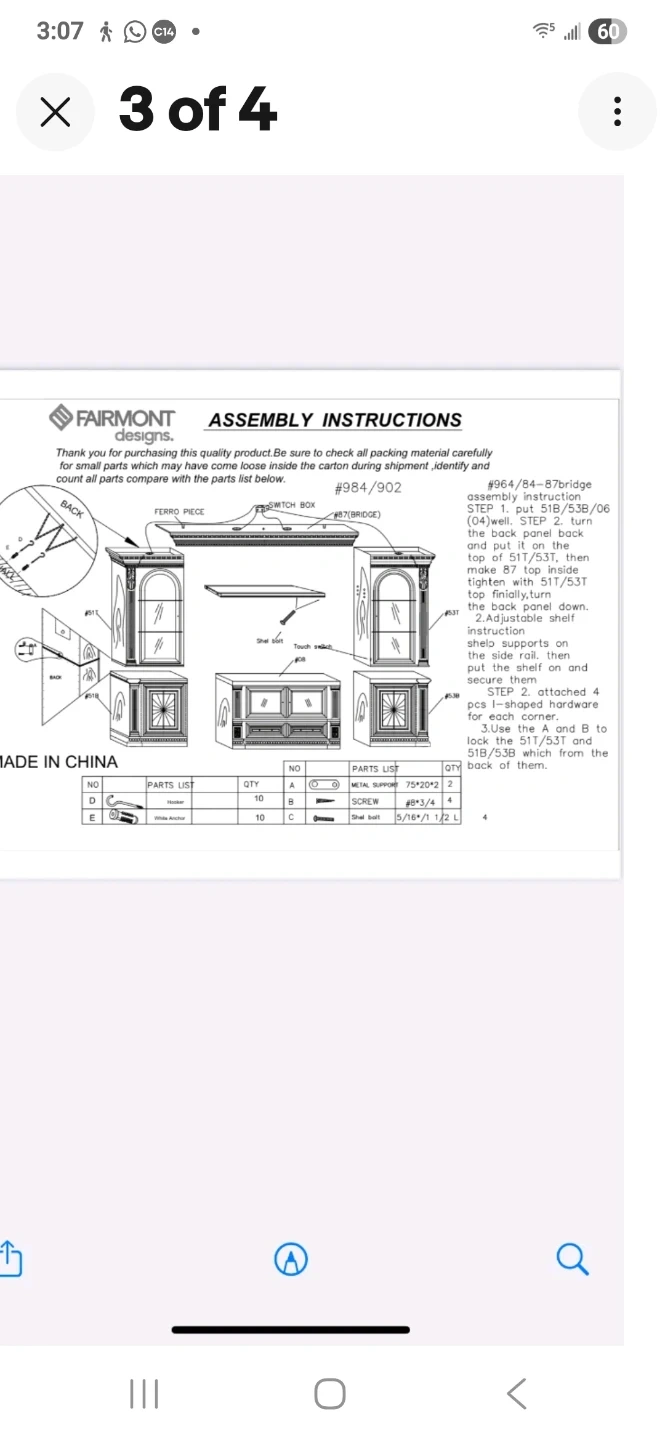 This large wooden entertainment center features intricate carvings and glass-paneled doors. It offers ample storage with multiple shelves and cabinets. It includes a central open space for a television. Assembly instructions are included.