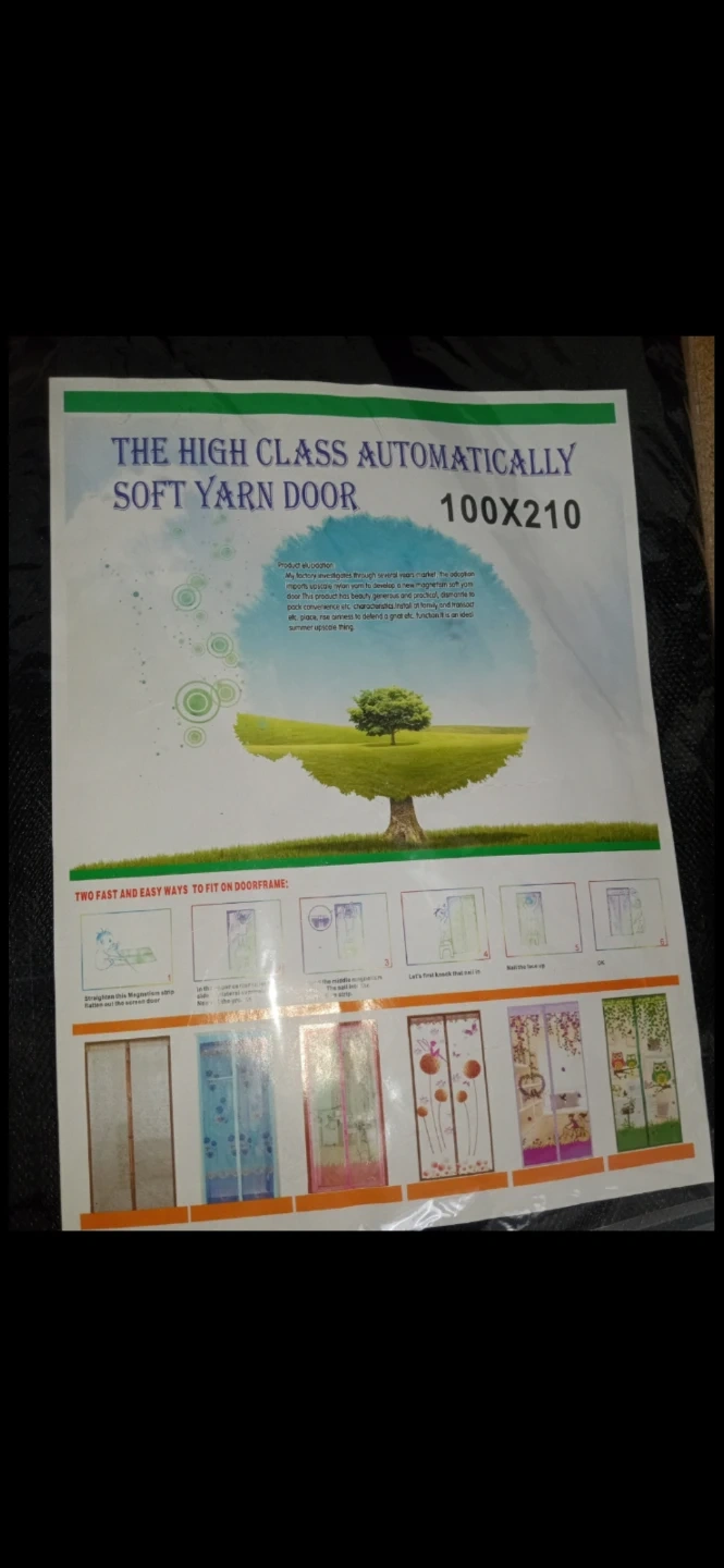 This is a high-class automatically soft yarn door. It's 100x210 in size and features magnetic closure. It's designed for easy installation on doorframes.