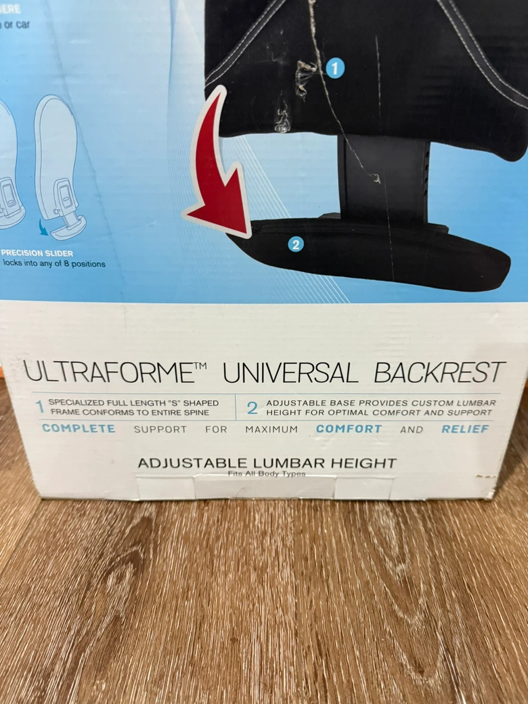 This backrest provides specialized full length 'S' shaped support that conforms to the entire spine. It features an adjustable base for custom lumbar height, offering optimal comfort and support. Use it at home, in the office, or in your car.