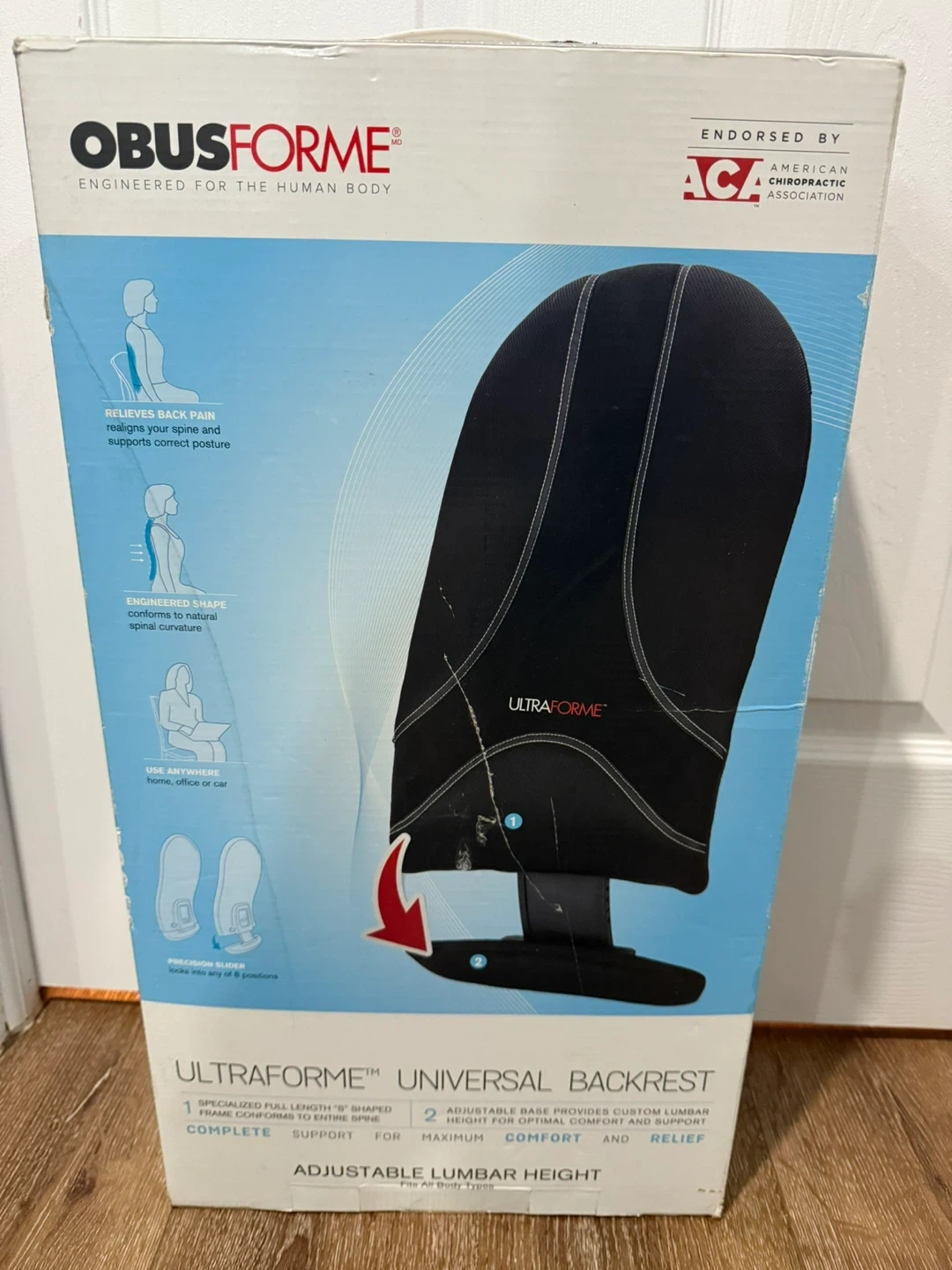 This backrest provides specialized full length 'S' shaped support that conforms to the entire spine. It features an adjustable base for custom lumbar height, offering optimal comfort and support. Use it at home, in the office, or in your car.