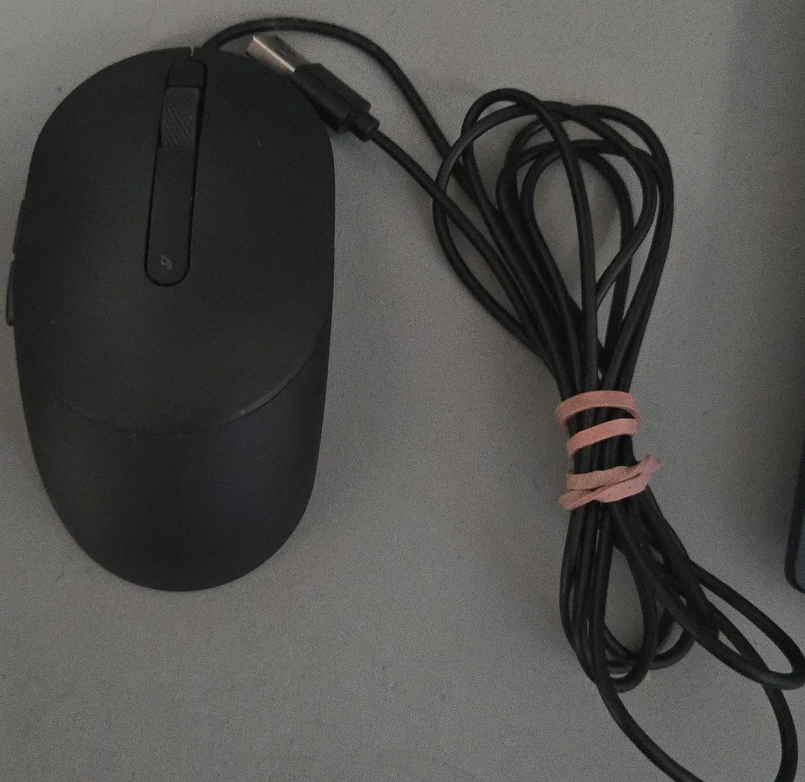 This is a black wired optical mouse from Dell. It's designed for reliable everyday use. The mouse connects via USB for easy setup.