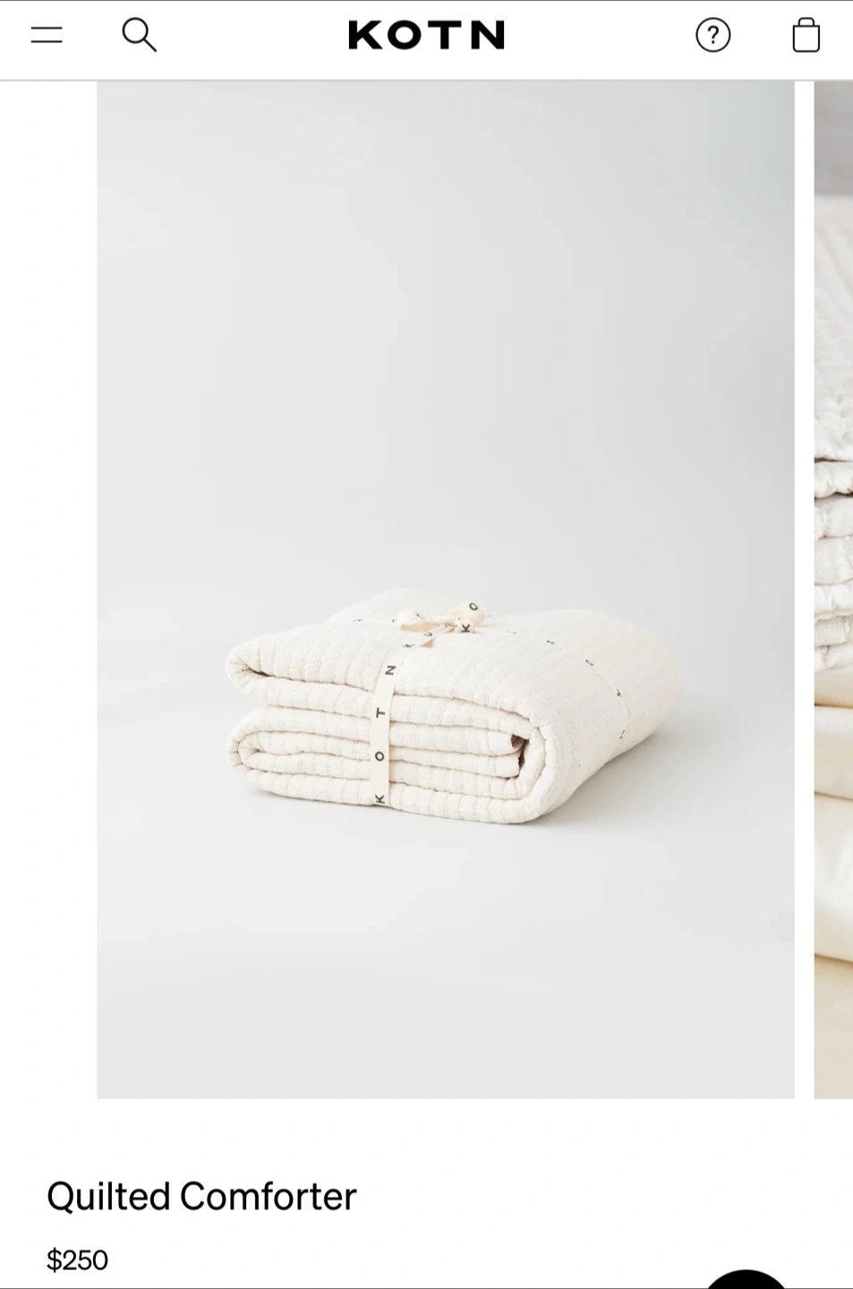 https://kotn.com/products/quilted-comforter?colour=natural&size=o-s&srsltid=AfmBOoqPG23vfgpy62BOLlSlGjQisdmo-SGAlth0mYKSAtrYdZ8-ynm4