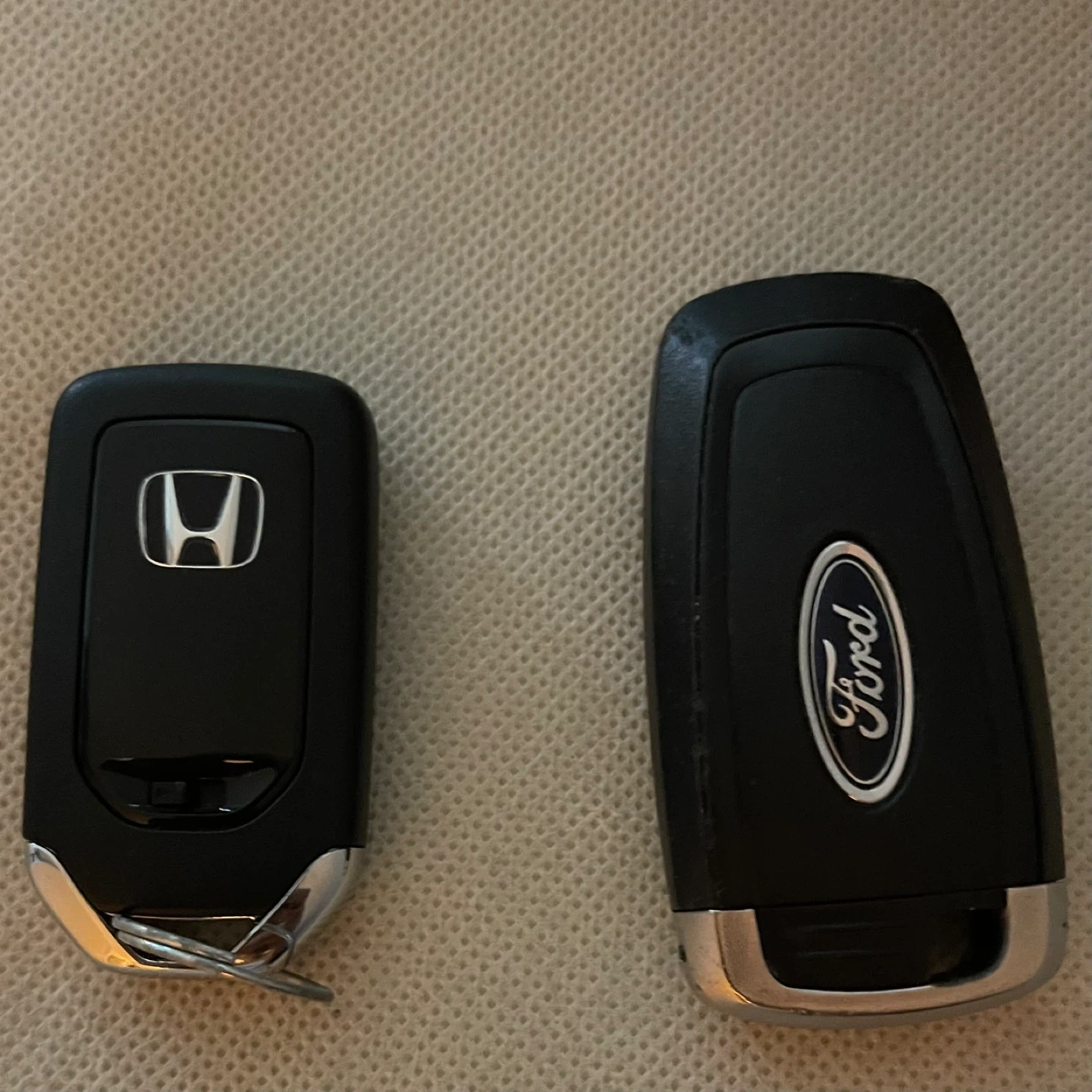 This listing includes one Honda key fob and one Ford key fob. Both are black and designed for remote entry and starting. They're in good condition for used fobs. $70 each or $130 for both. te xt me FIVE 16 TWO 32 SIX SIX 59