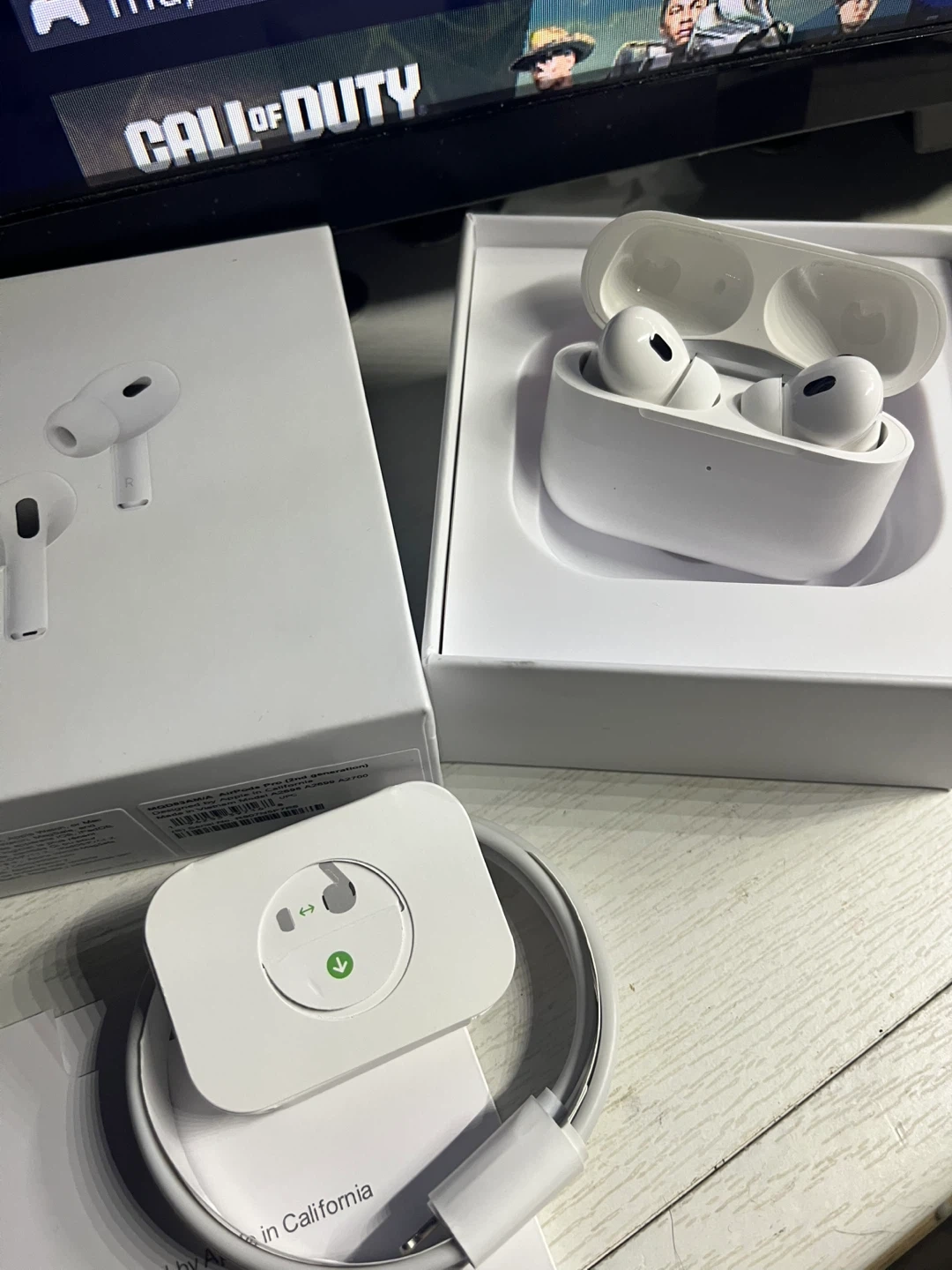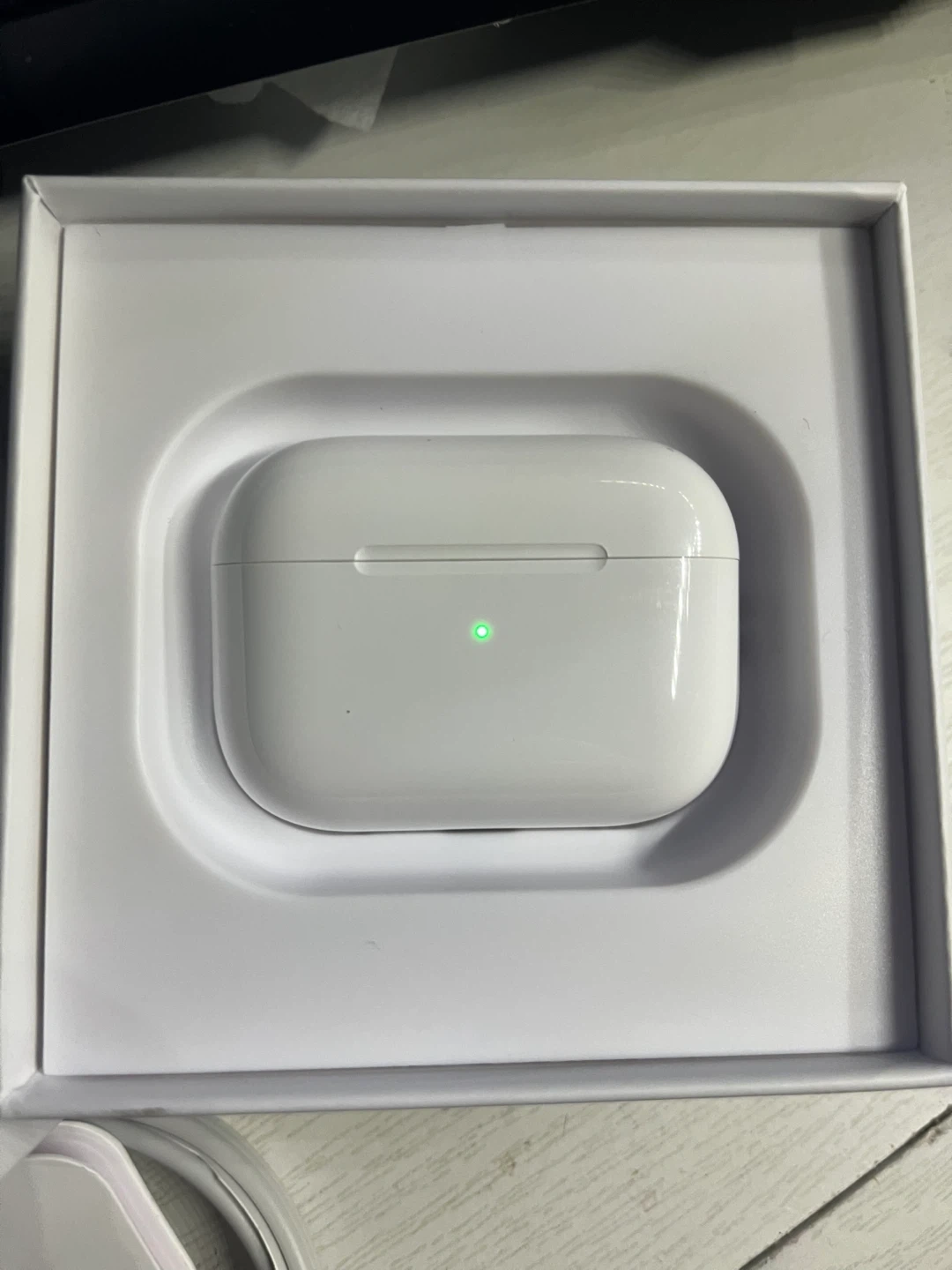 Apple AirPods Pro (2nd generation) with wireless charging case. It's in excellent condition and comes with all original accessories, including the charging cable. These earbuds offer active noise cancellation and transparency mode for an immersive listening experience.