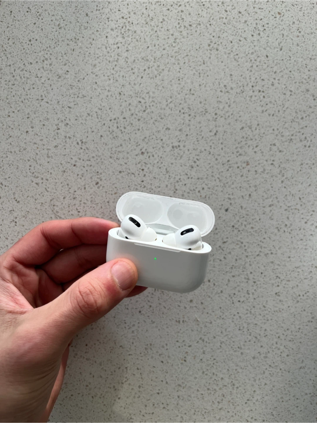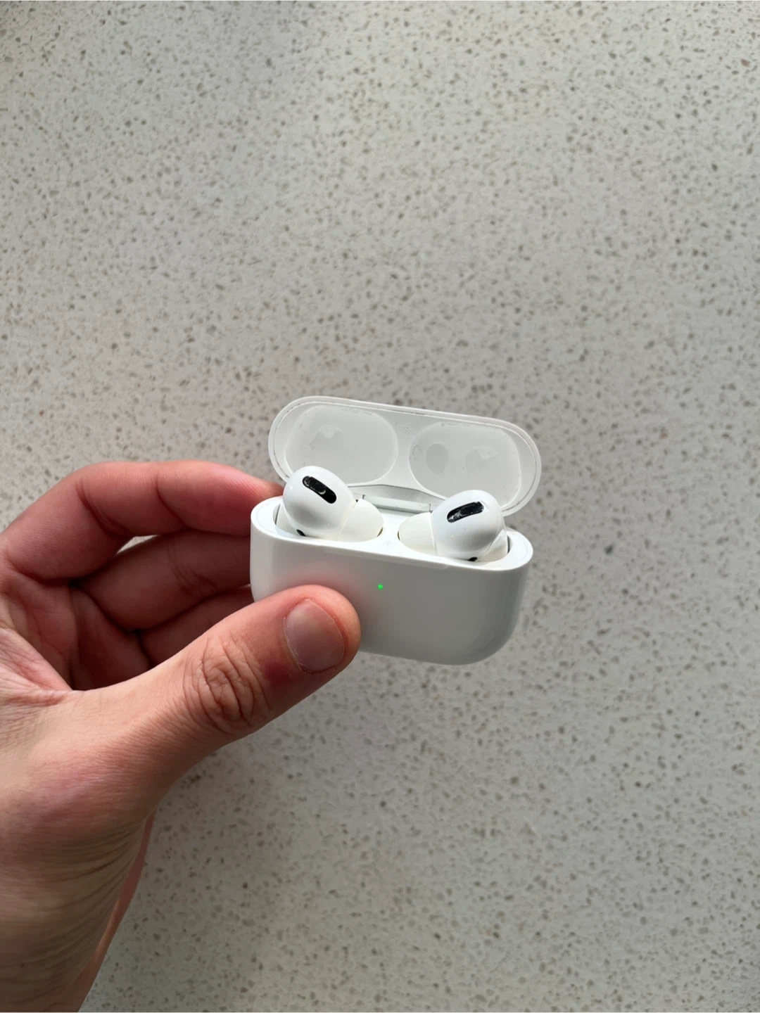 Used Apple AirPods Pro (1st Generation) with MagSafe charging case. These wireless earbuds offer active noise cancellation and a comfortable fit. A great option for on-the-go listening!