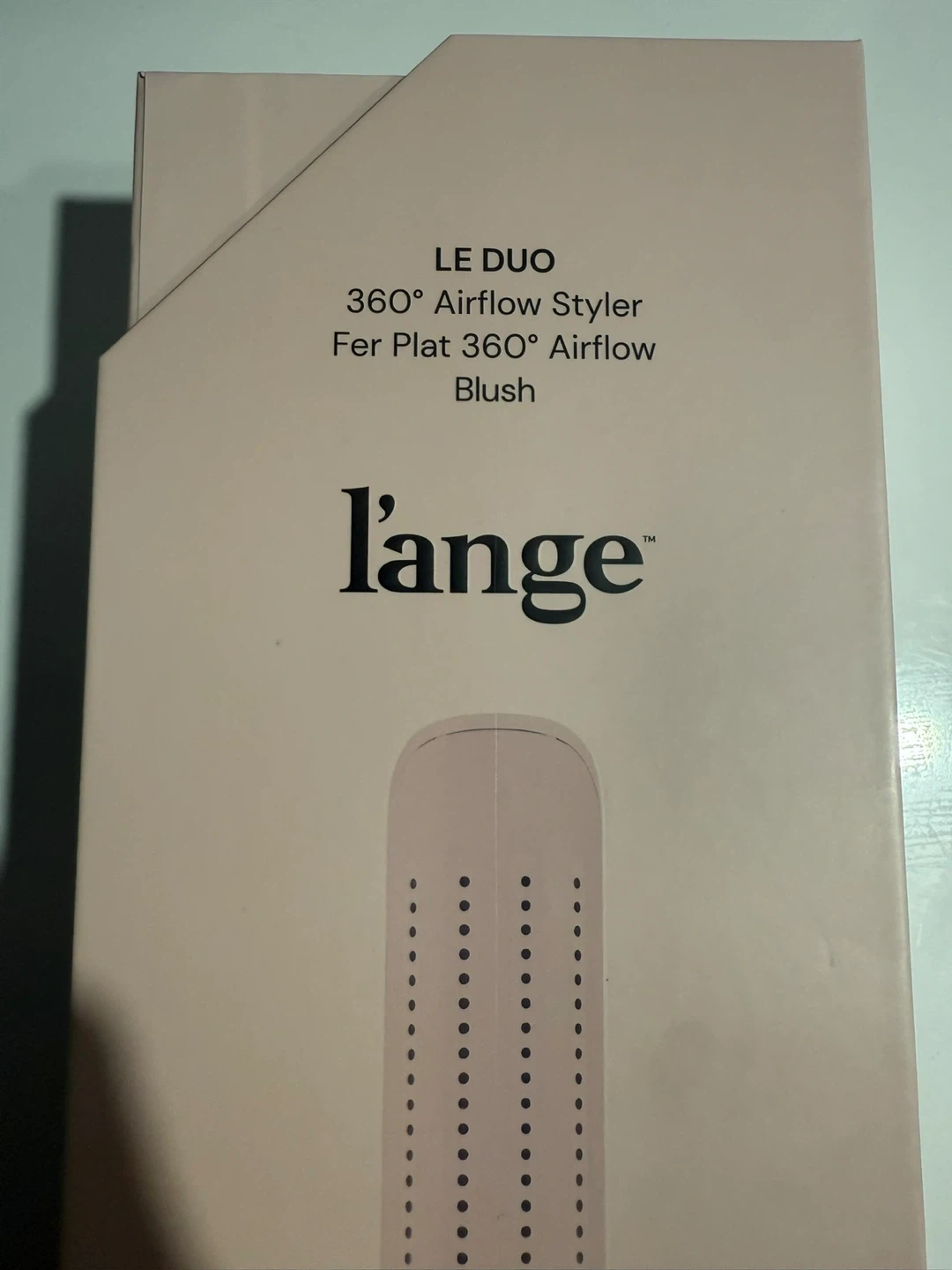 This is the L'ange Le Duo 360° Airflow Styler in Blush. It features 1" floating titanium plates and a barrel clip. The tool is dual voltage and has adjustable temperatures from 280°F-430°F.