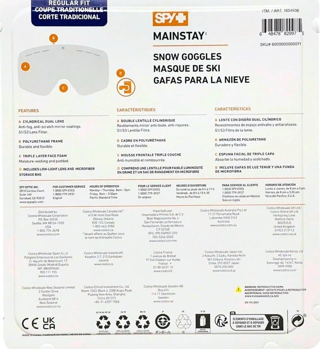 Brand new SPY Mainstay Ski Goggles for men and women snowboarders. These feature a cylindrical dual lens that resists fog and scratches, offering 100% UV protection.