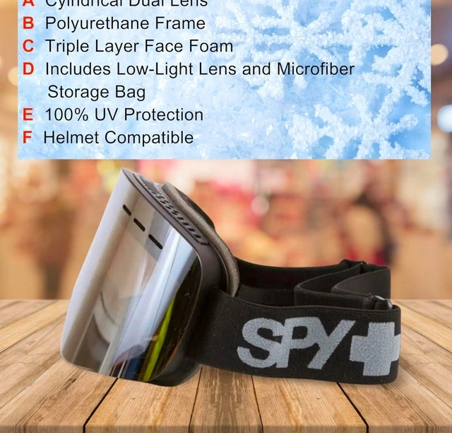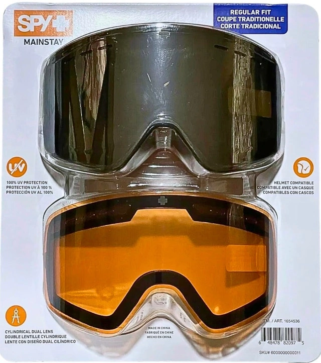 Brand new SPY Mainstay Ski Goggles for men and women snowboarders. These feature a cylindrical dual lens that resists fog and scratches, offering 100% UV protection.