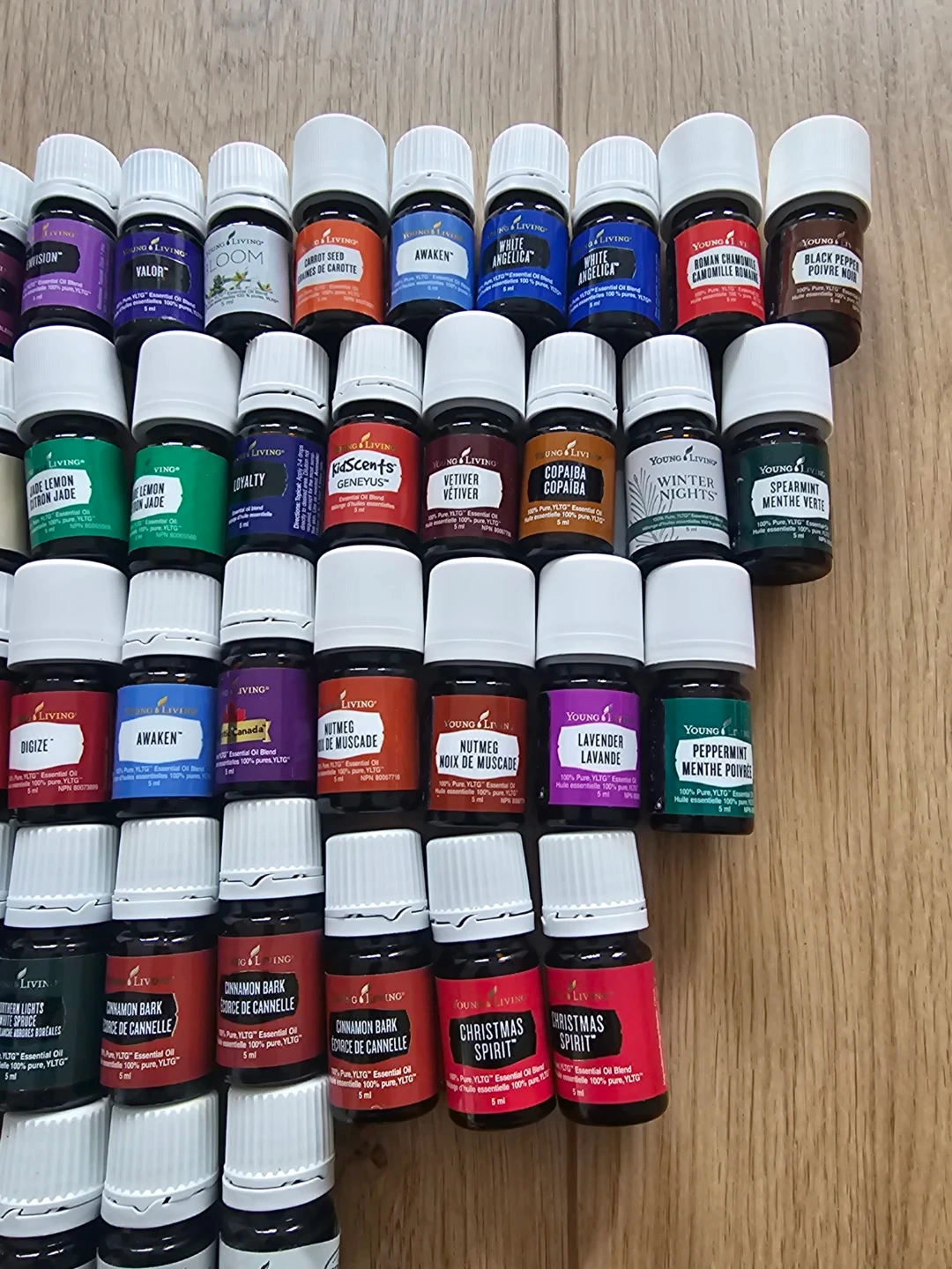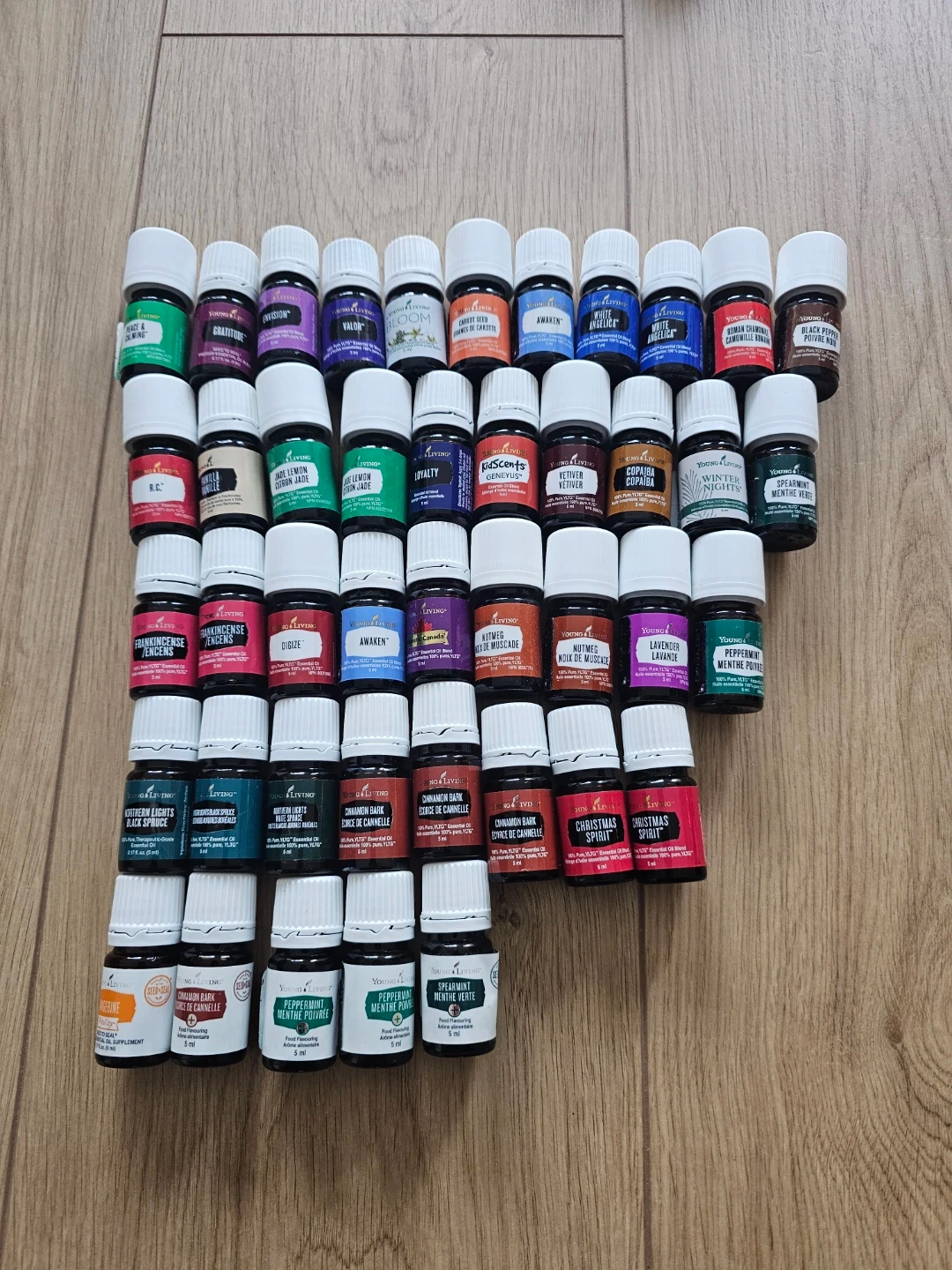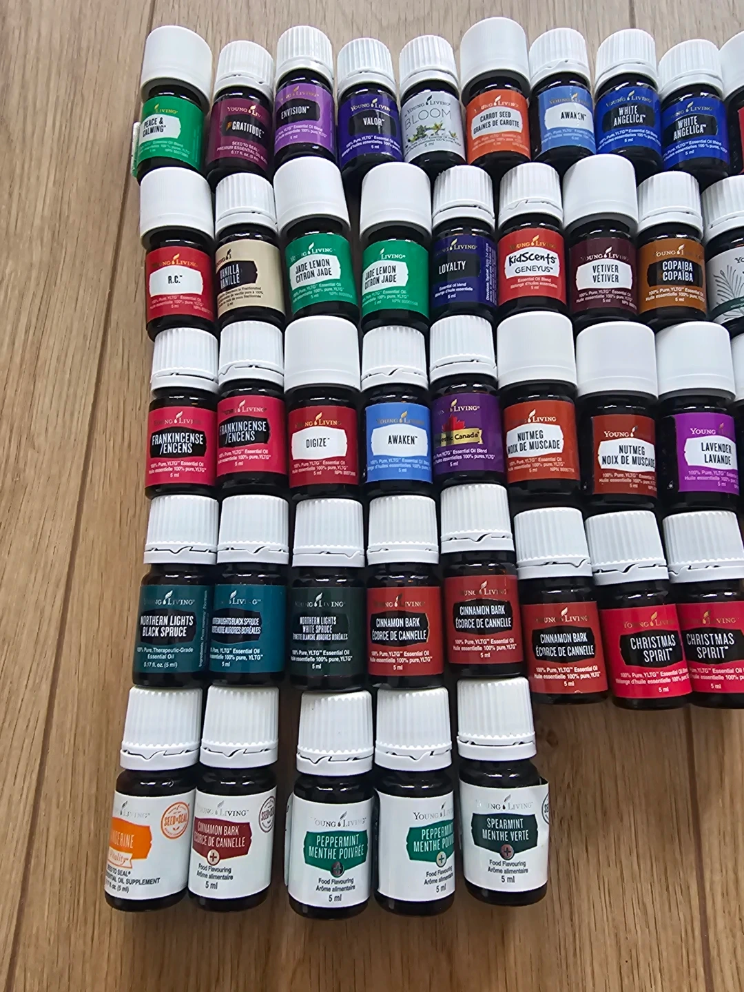 This is a collection of various Young Living essential oils, including blends and single oils. Each bottle is typically 5ml and made with 100% pure, therapeutic-grade essential oil. It's a great way to explore different scents and their uses