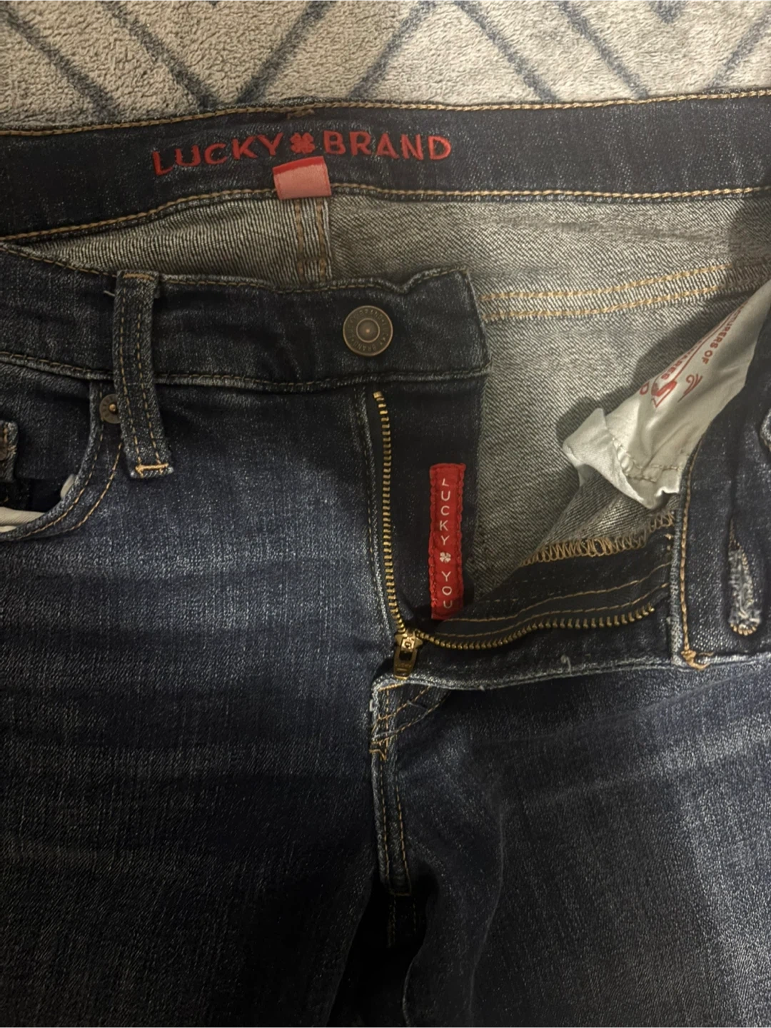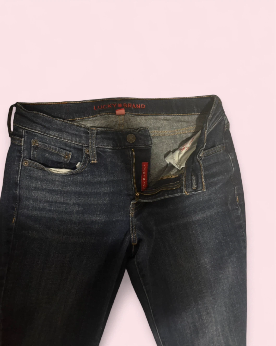 Lucky Brand women's jeans in a dark wash. Classic denim material. These jeans are a stylish staple for any wardrobe! #lucky#2000s