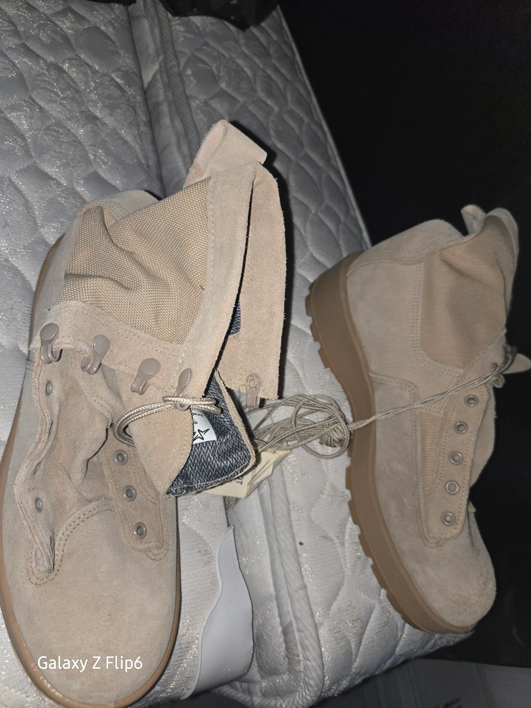 Wellco combat boots in tan suede. Size is 11.0 R. Features a durable Vibram sole. These boots are great for outdoor activities and tactical use!