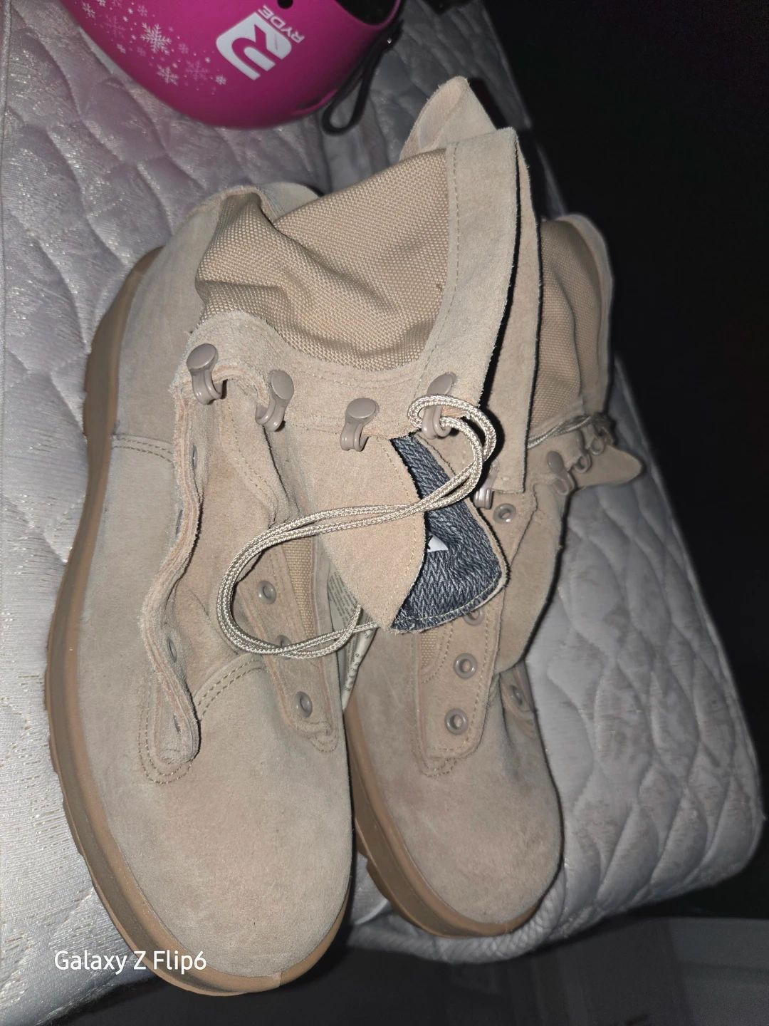 Wellco combat boots in tan suede. Size is 11.0 R. Features a durable Vibram sole. These boots are great for outdoor activities and tactical use!