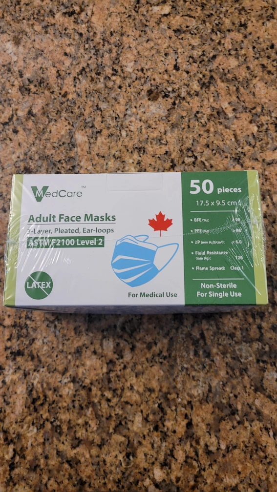 MedCare Adult Face Masks are 3-layer, pleated, and feature ear-loops. They're made with non-woven fabric and have a nose clip. Each box contains 50 pieces.