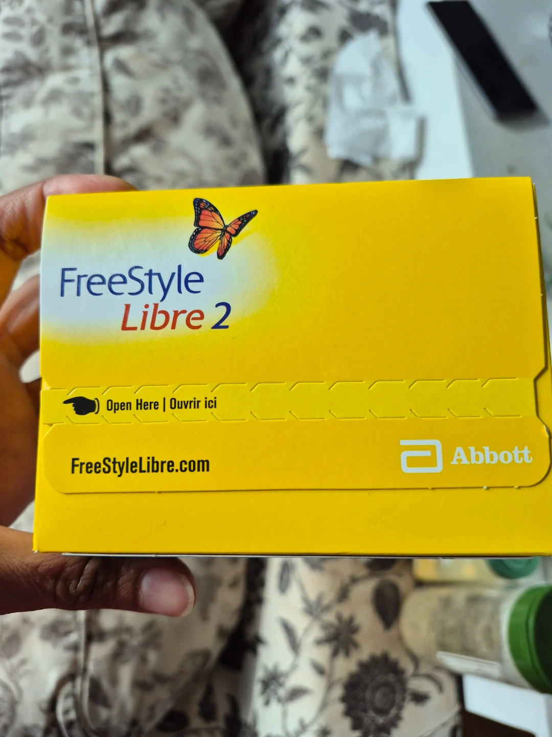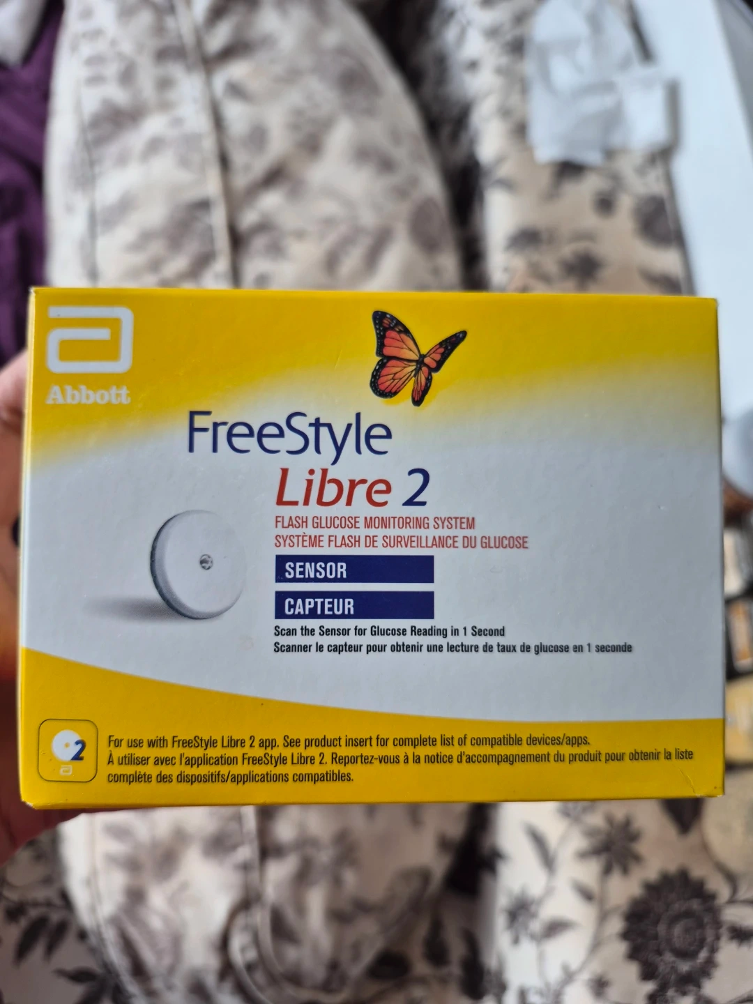 This is an Abbott Freestyle Libre 2 sensor for flash glucose monitoring. It scans the sensor for a glucose reading in 1 second.