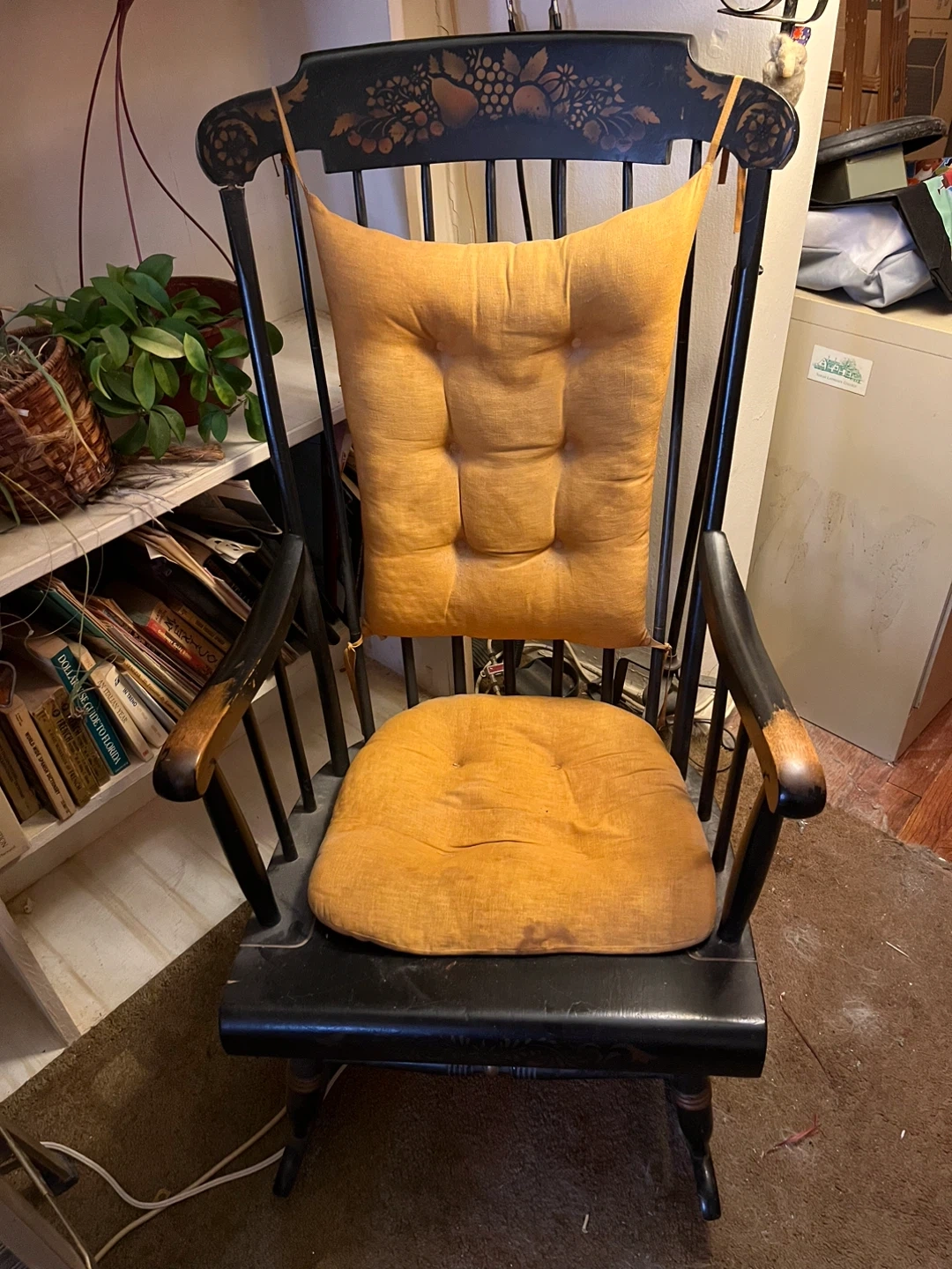 Round Oak Butcher Block Dining Table with 4 Wicker Chairs