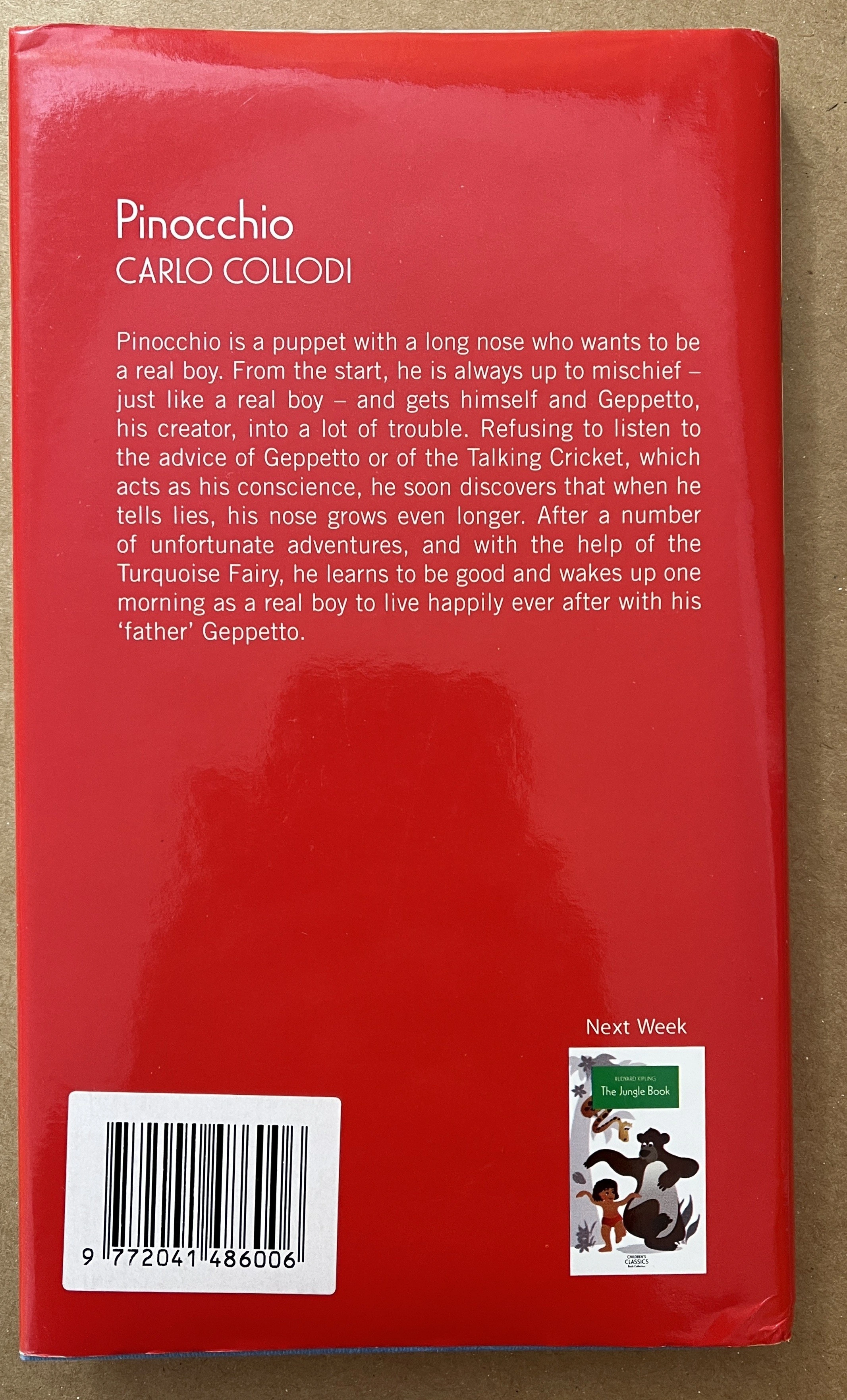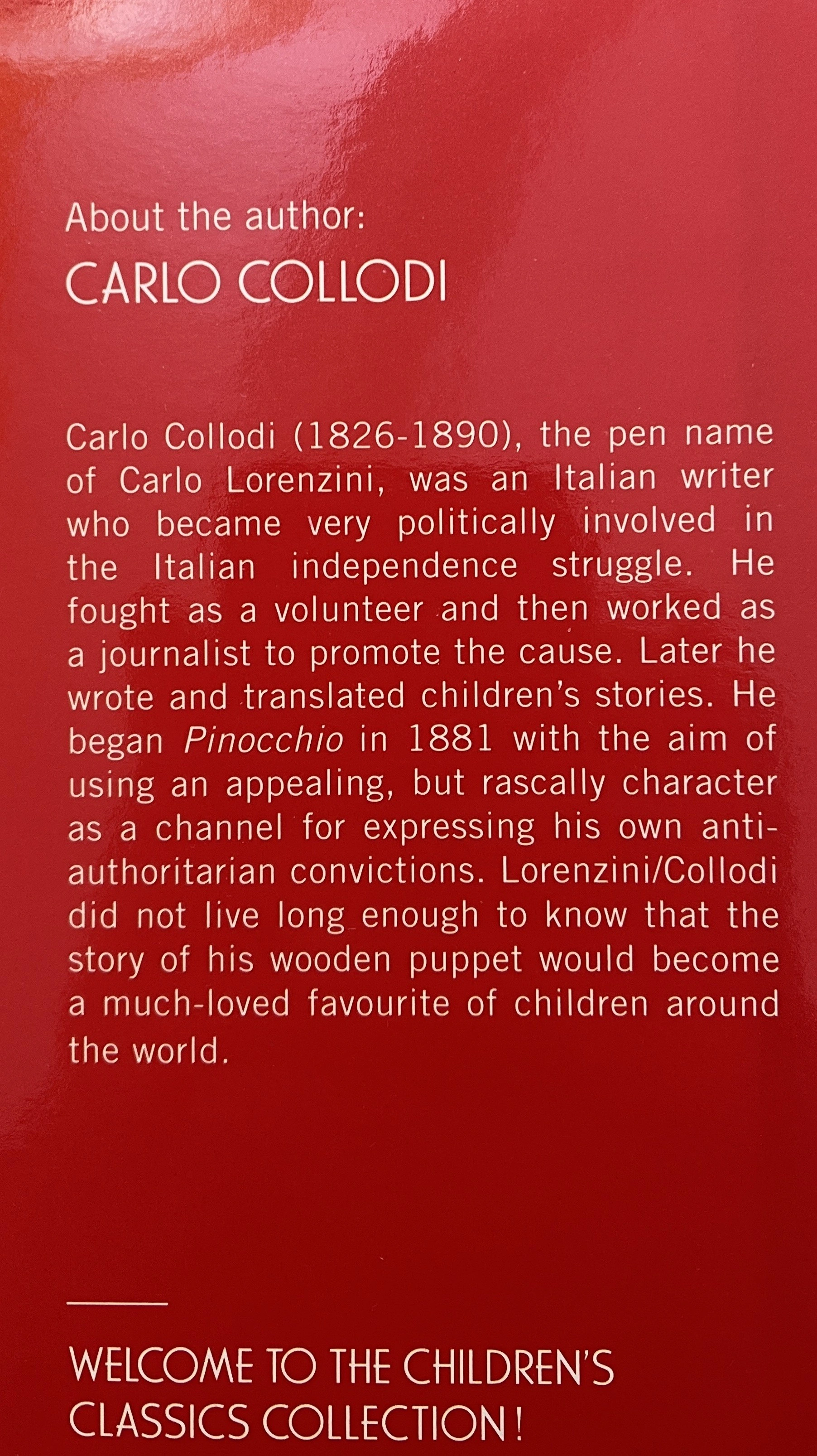 Selling a copy of Pinocchio by Carlo Collodi from the Children's Classics Book Collection! It's a charming story about a puppet with a long nose who wants to be a real boy. Perfect for young readers and collectors alike