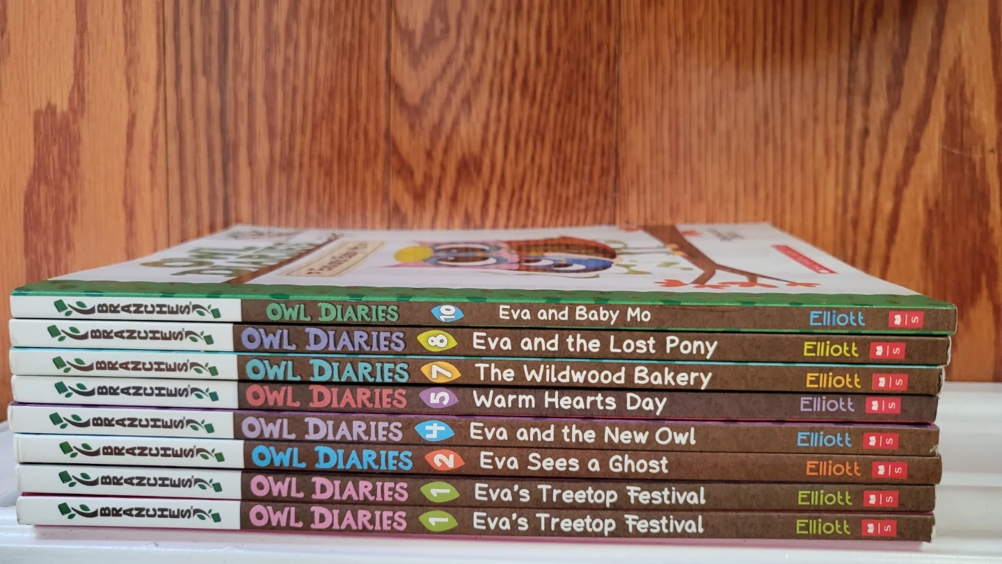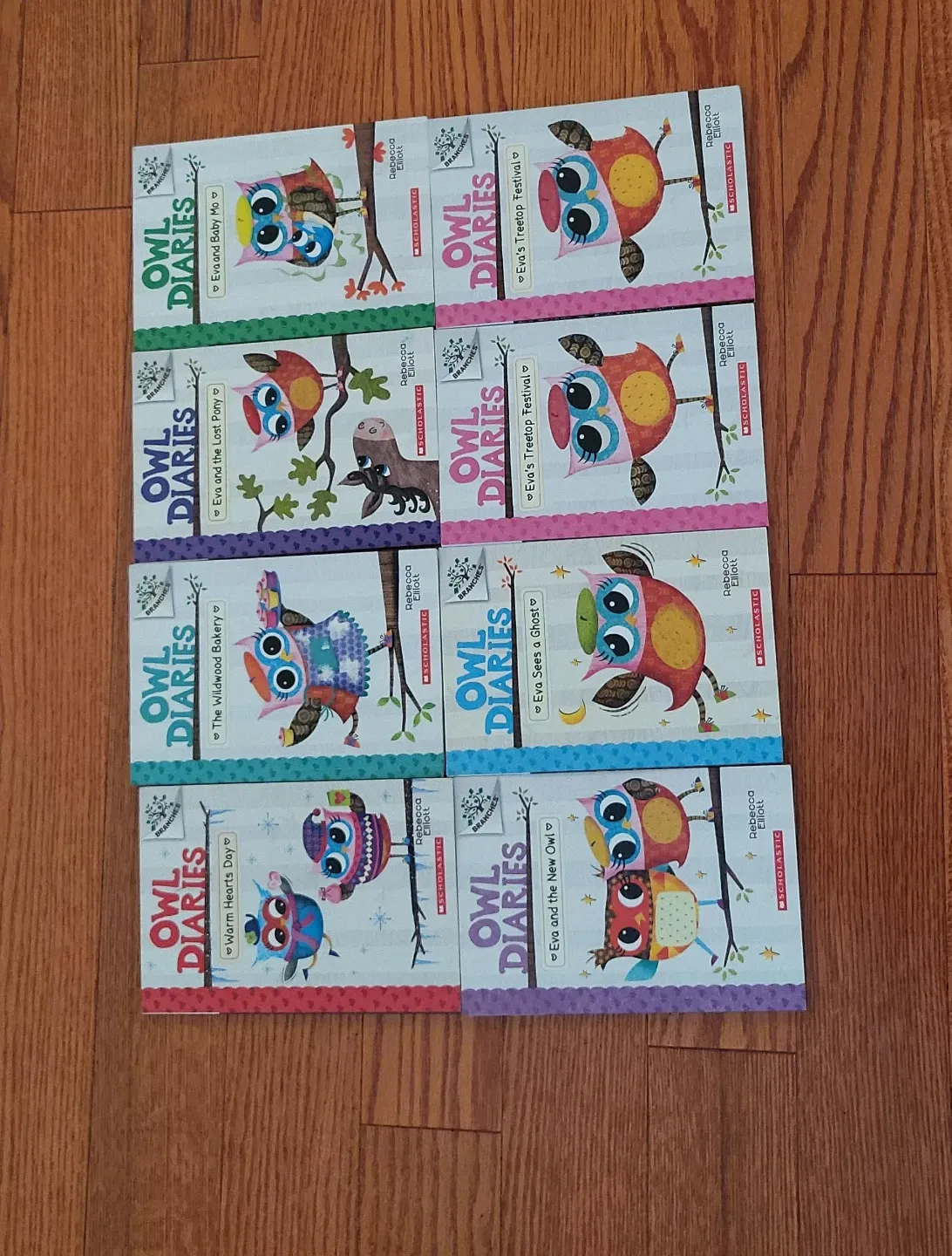 This is a collection of Owl Diaries books by Rebecca Elliott. The set includes 8 paperback books, featuring stories about Eva the owl. These books are great for young readers.