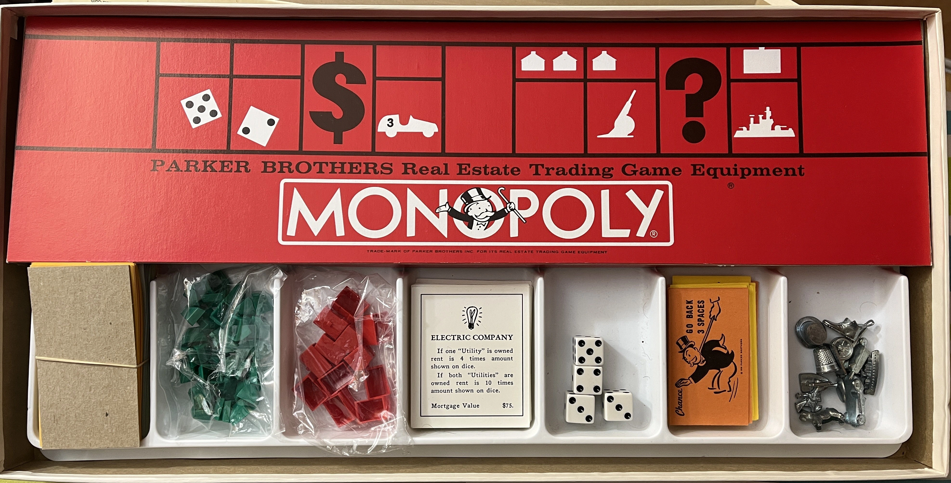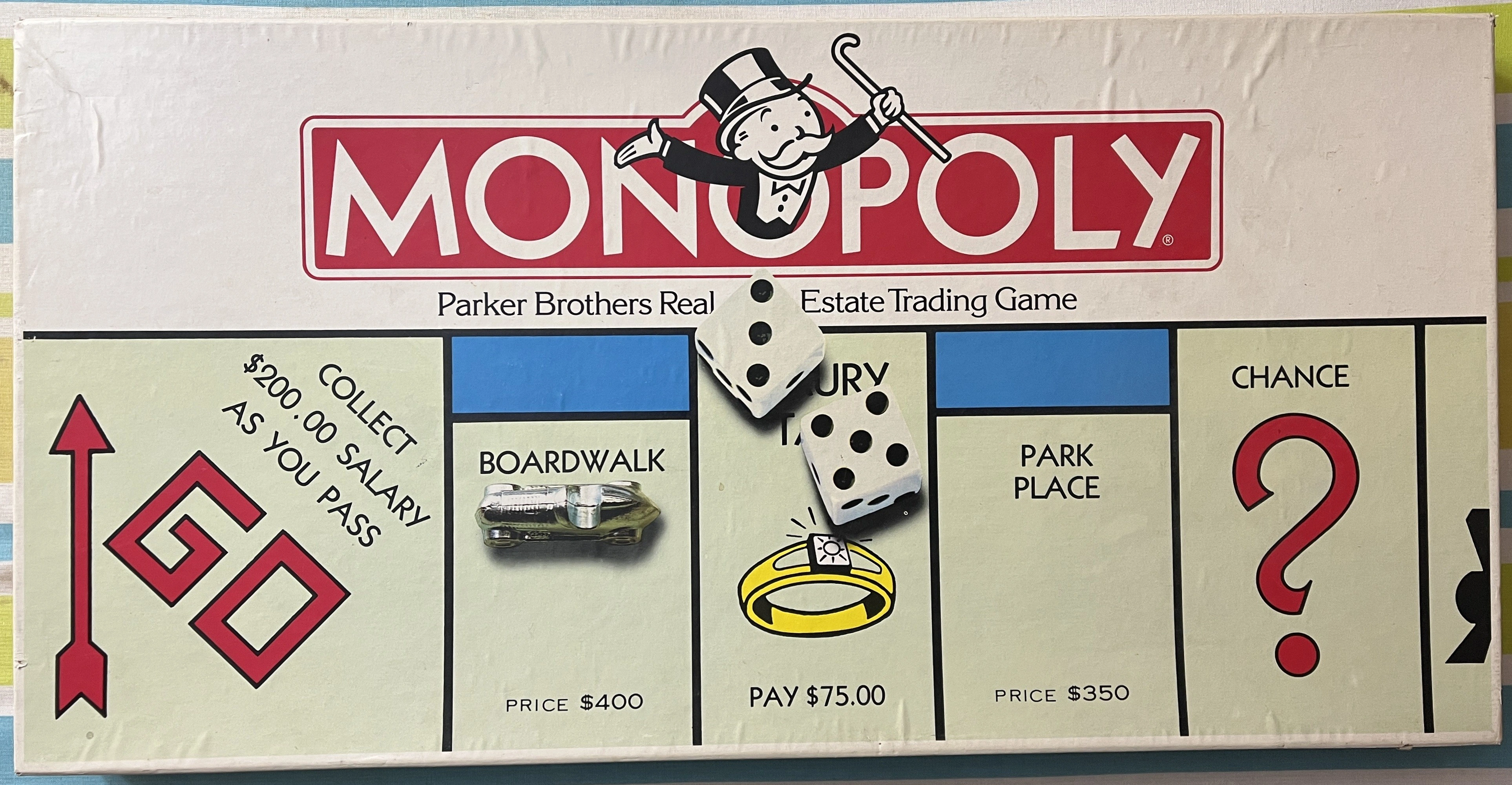 Selling a complete Monopoly board game, English Edition! Comes with all the classic pieces, cards, and dice for hours of fun. The box is included and in good condition, ready for its next owner to enjoy some real estate trading