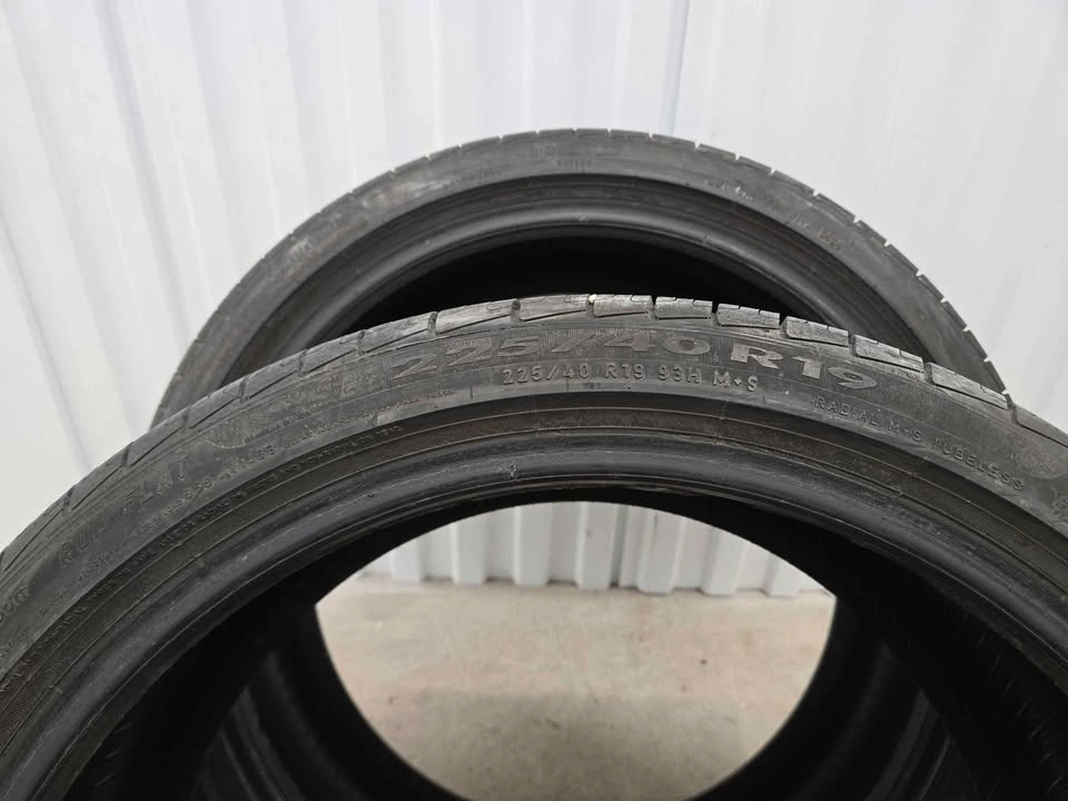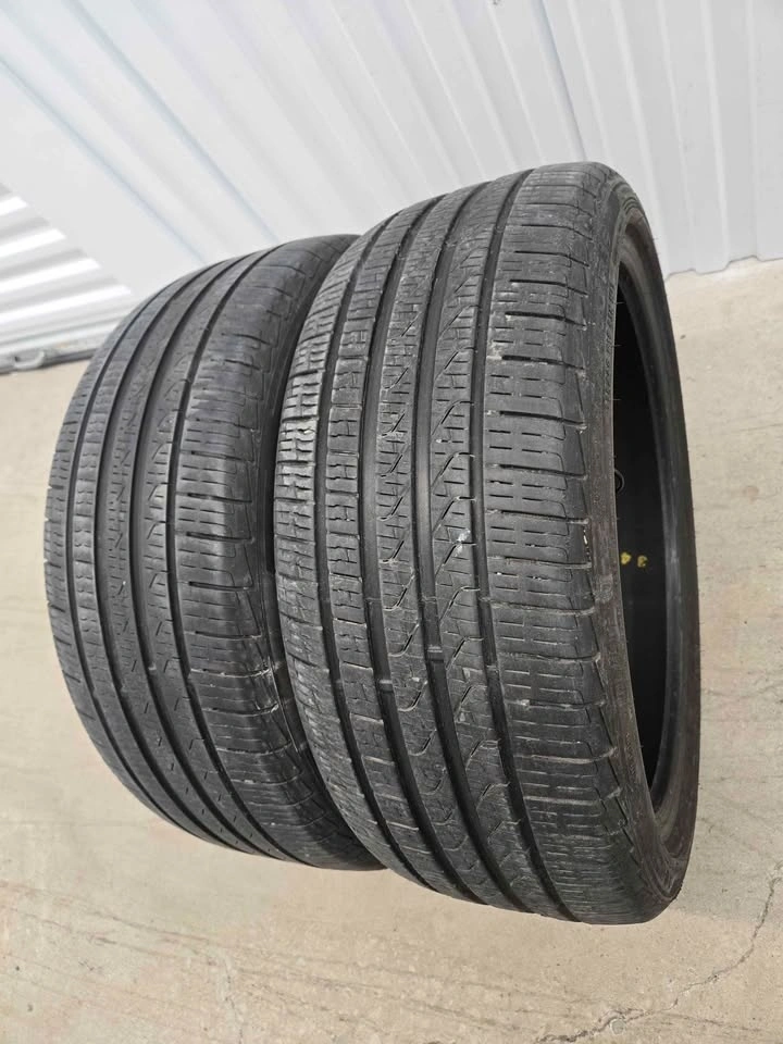 Two Pirelli Cinturato P7 all season run flat tires, size 225/40R19. They have good tread and can be used for many more seasons. Save money compared to buying new.