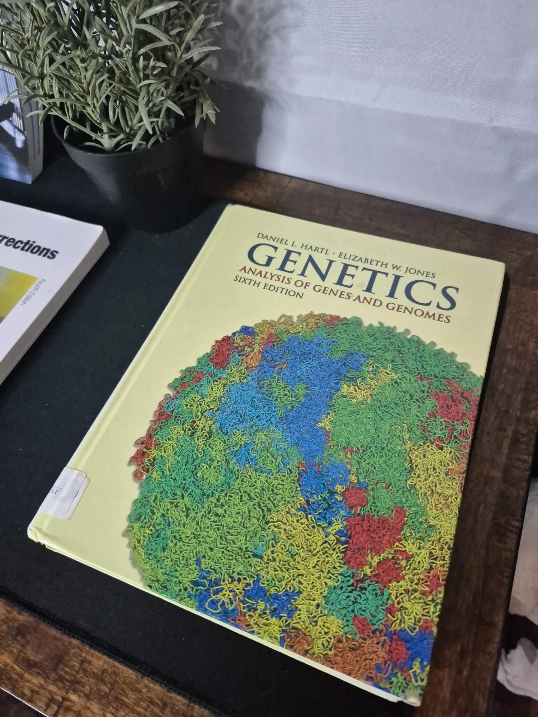 This is the Sixth Edition of 'Genetics: Analysis of Genes and Genomes' by Daniel L. Hartl and Elizabeth W. Jones. It's a comprehensive textbook for studying genetics. The book is in good condition and ready for a new student.