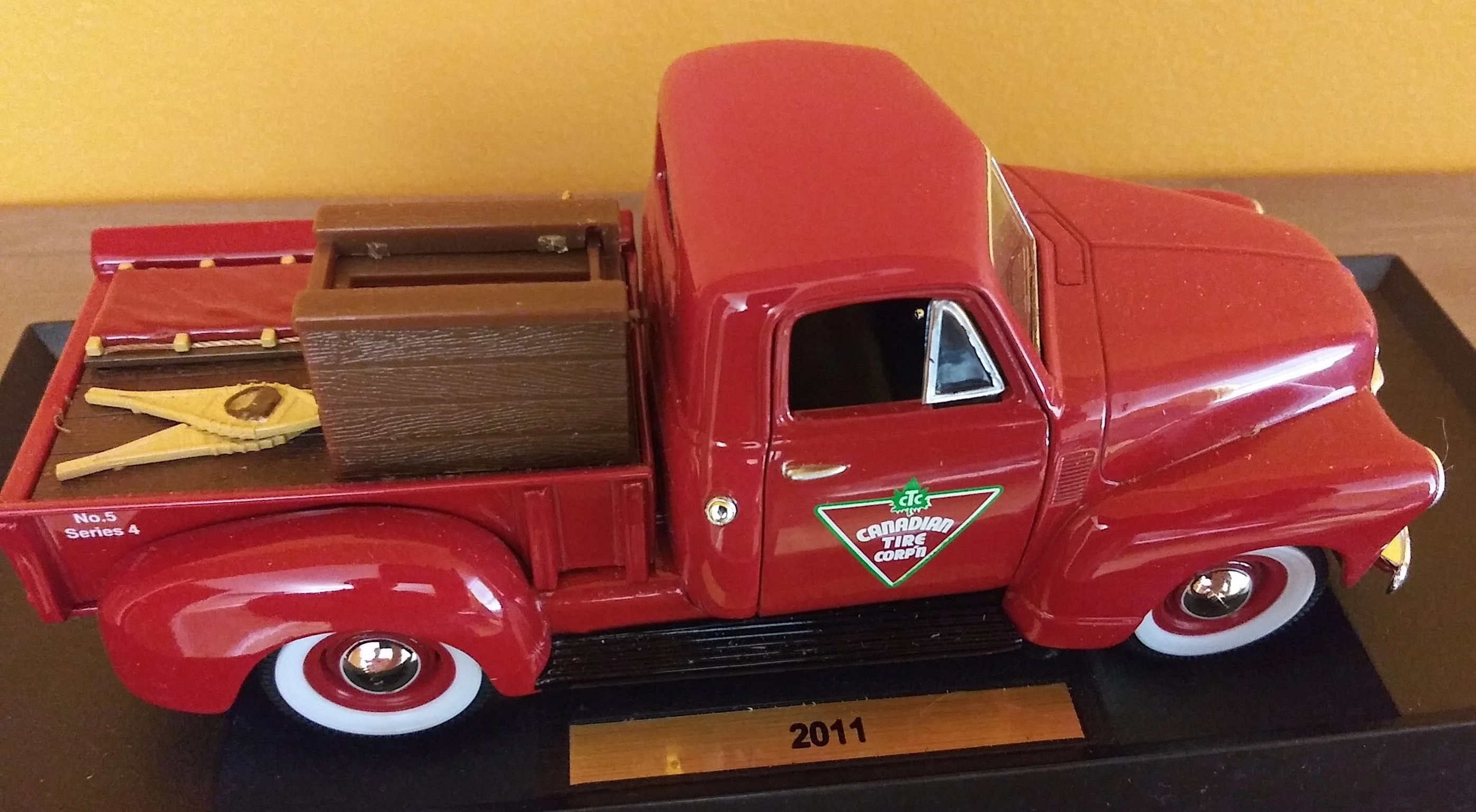 Selling a 1952 Chevy Pickup diecast model in red, branded with the Canadian Tire Corporation logo. It's a No. 5 Series 4 collectible from 2011. A great piece for any diecast collector or Canadian Tire enthusiast!
