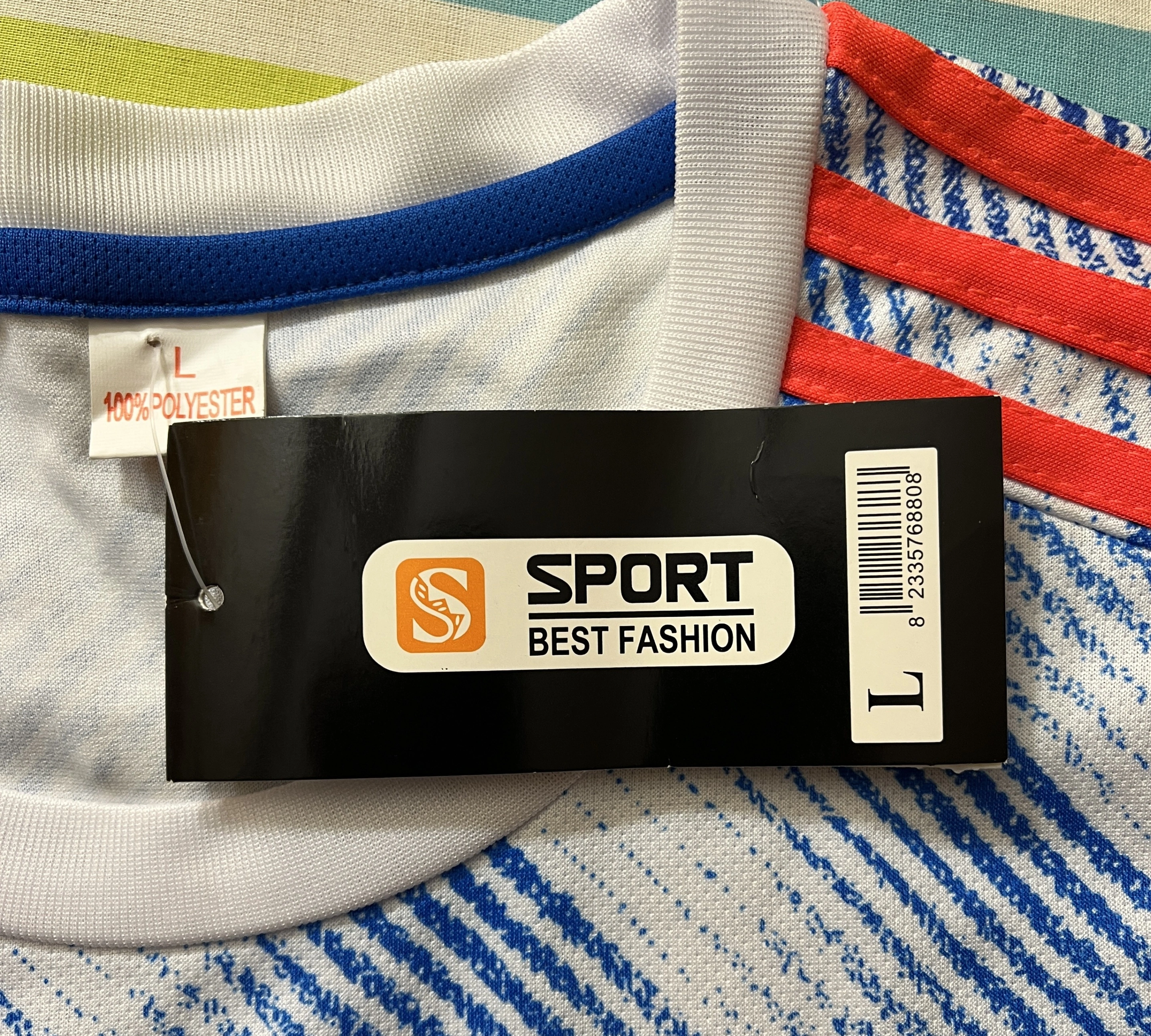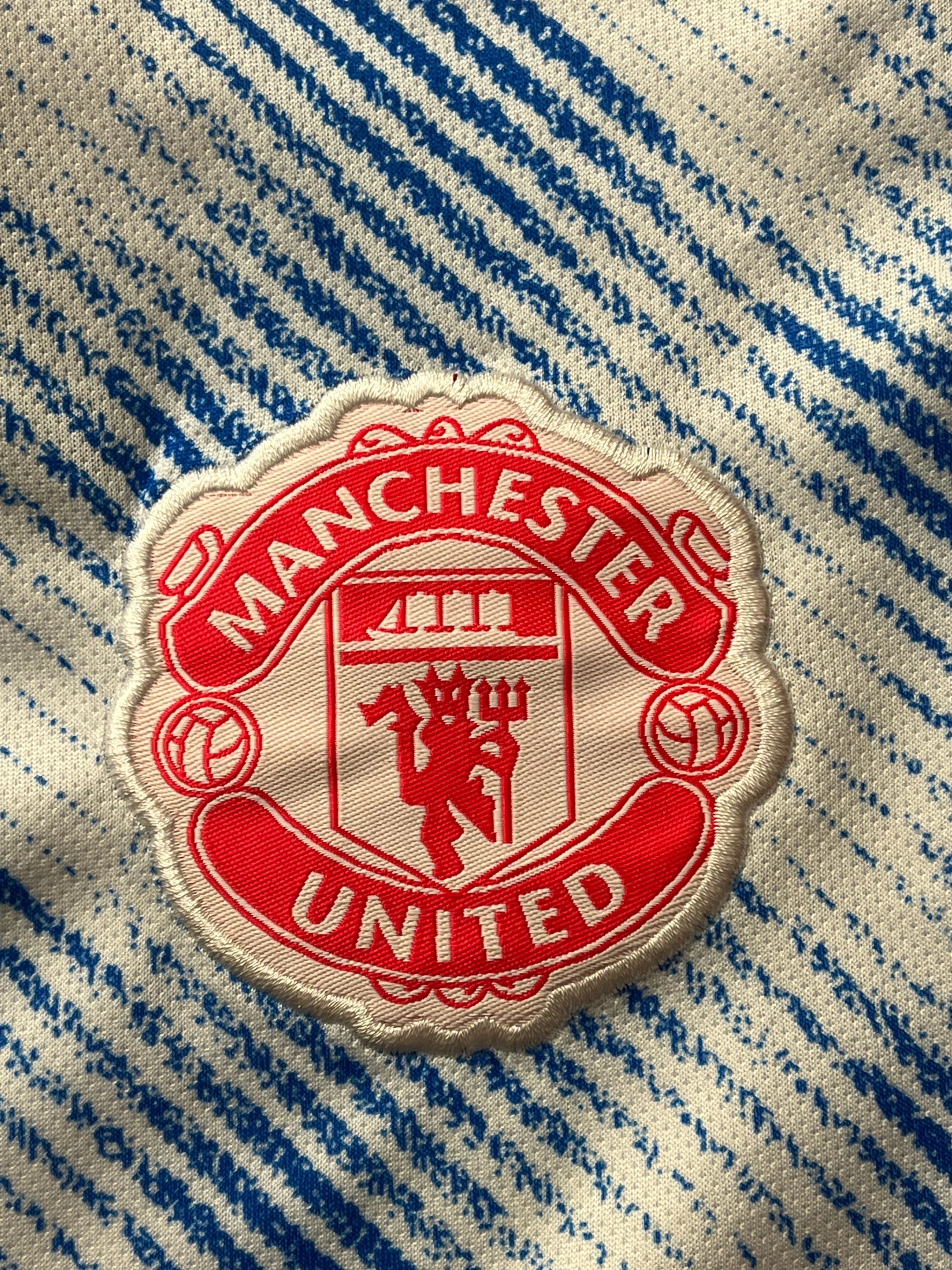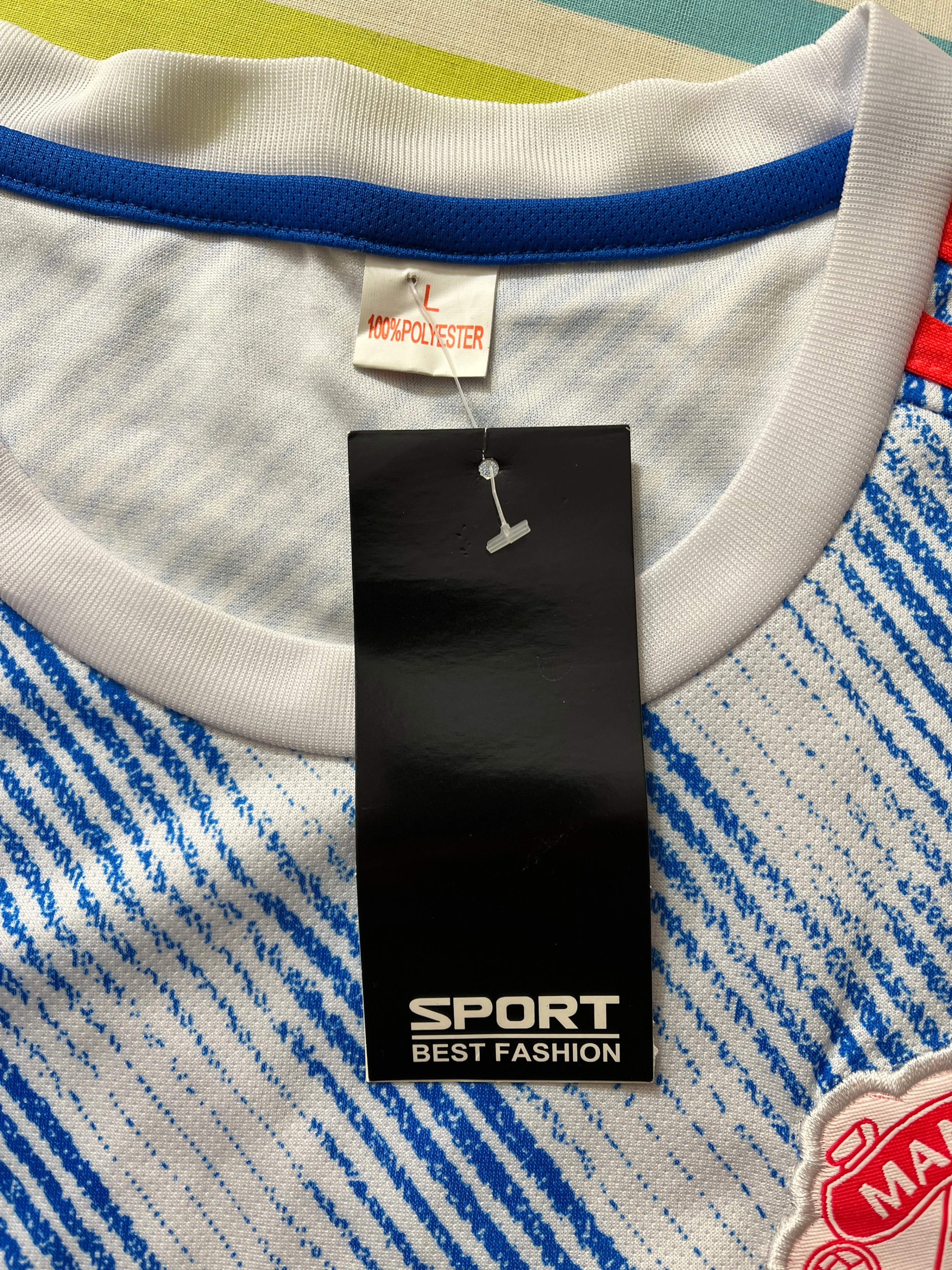 Selling a Manchester United jersey with Ronaldo's name and number 7 on the back! It's a size L and made of 100% polyester. The jersey features the TeamViewer sponsor logo on the front and the Manchester United crest on the chest