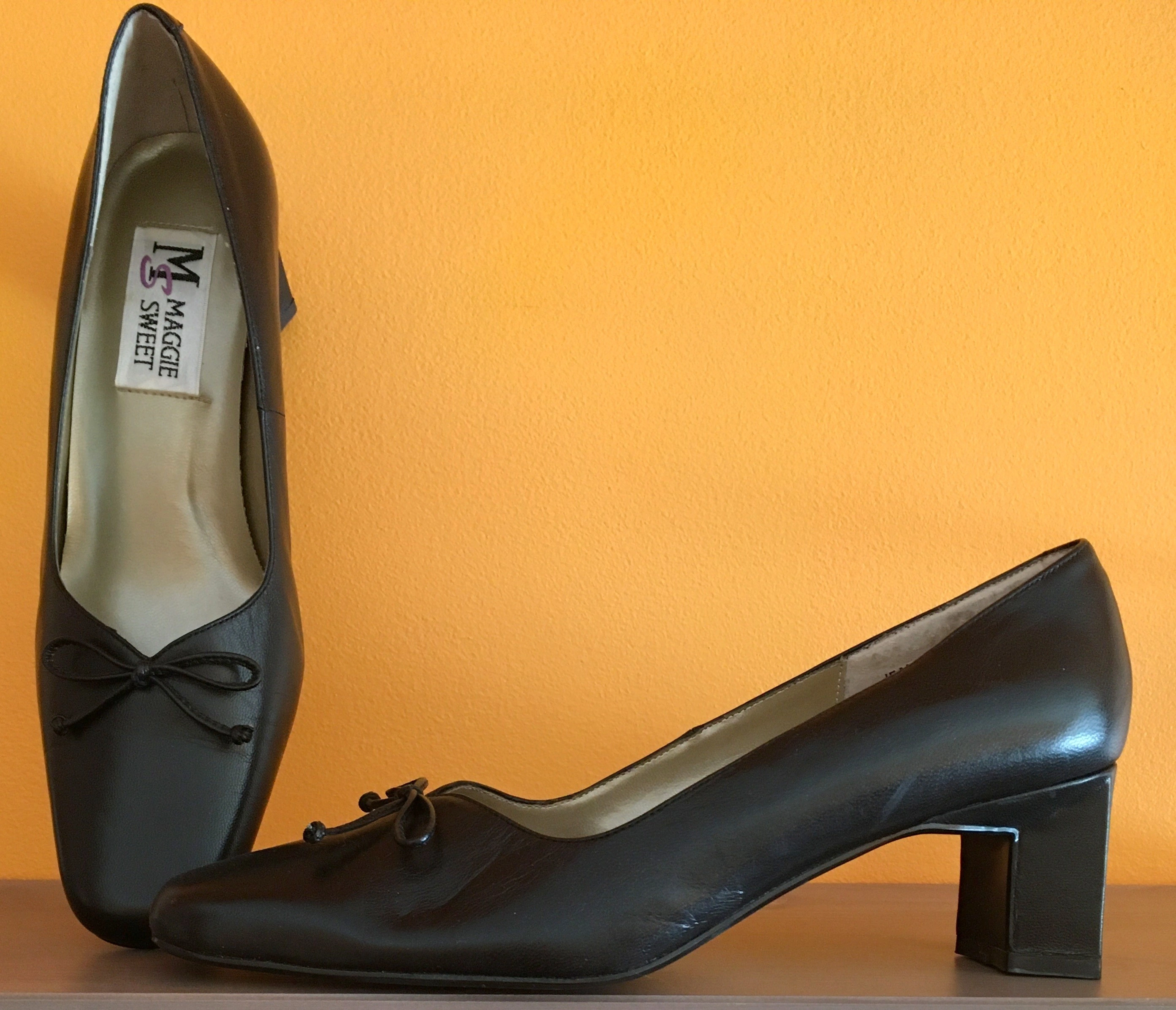 Classic black leather heels from Maggie Sweet! These are a size 8M and feature a cute bow detail. The upper is leather, and they're in great shape for adding a touch of elegance to any outfit