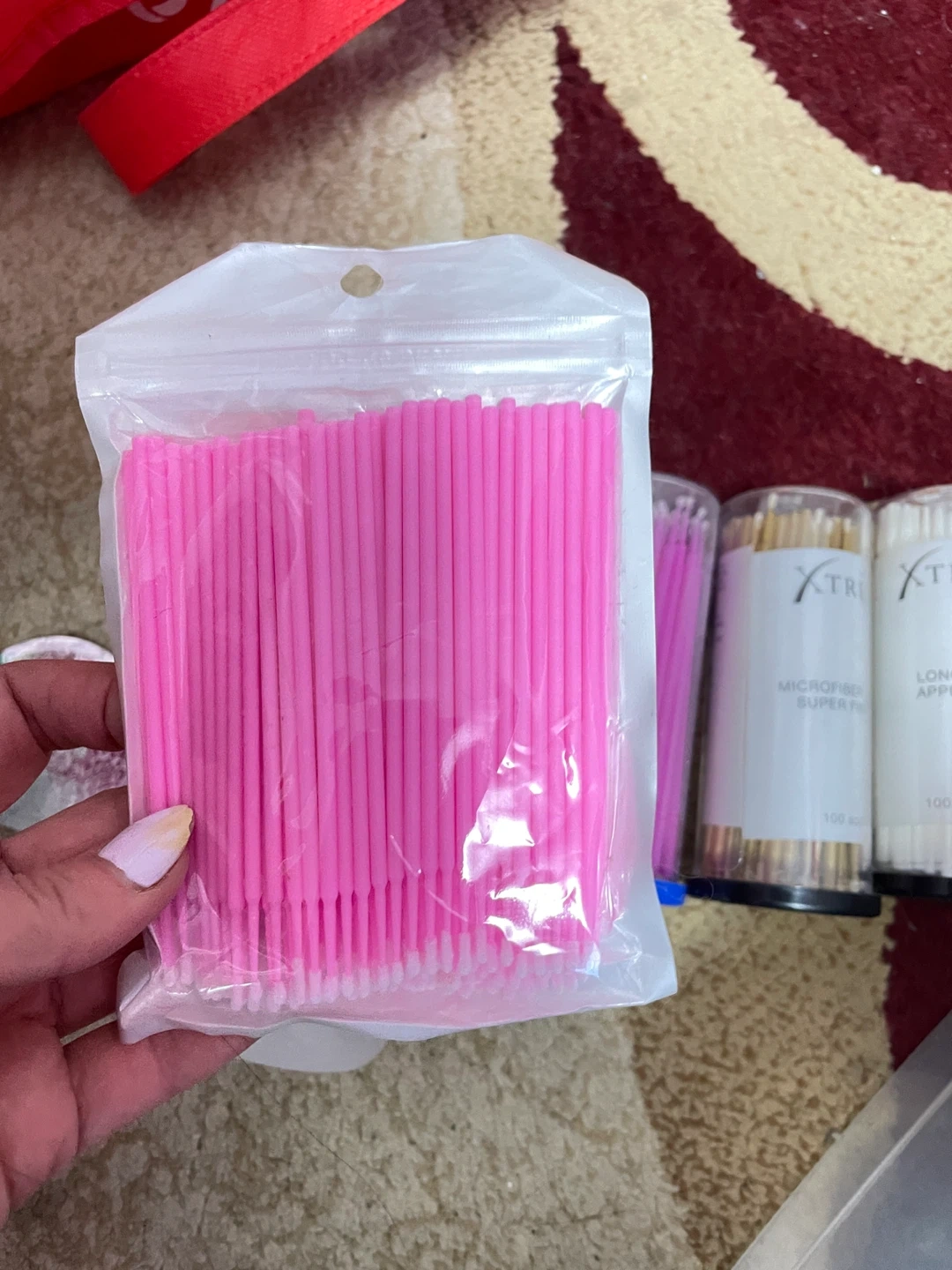 Lot of Xtreme Lashes brand eyelash extension supplies. Includes microfiber applicators, eyelash primer, adhesive trays, and assorted eyelash extensions. Great for lash artists!
