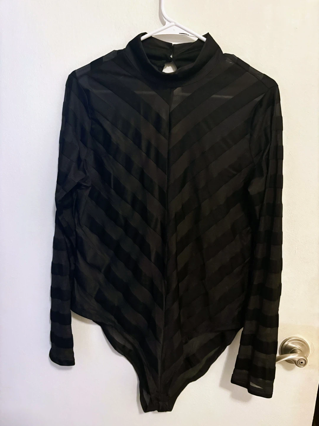 Buy & SellHaute Monde 1XL Black Sheer Striped Mock Neck BodysuitHaute Monde 1XL Black Sheer Striped Mock Neck Bodysuit$10Sheer black long-sleeve bodysuit from Haute Monde. It features a mock neck and a striped pattern. Size 1XL. Made in China. A9ConditionLike newBrandHaute MondeWHERE TO MEET99 Marble Hill AveView MapSELLERverifiedclaudiaMarble Hill1034 reviews0 chats·0 favorites·2 viewsSEND CHAT TO SELLERHi claudia! I’m interested in your listing.Hi claudia! I’m interested in your listing.Get the Karrot app to chatSign In to chat