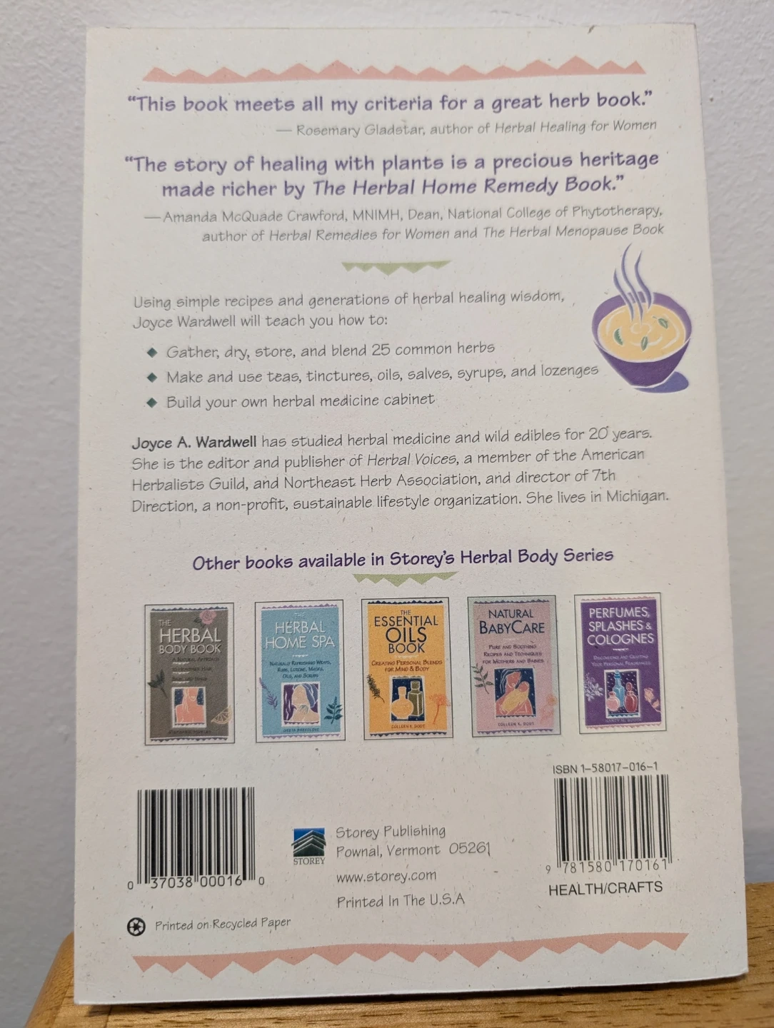 This book offers simple recipes and generations of herbal wisdom. It covers making and using teas, tinctures, oils, salves, syrups, and lozenges. Joyce A. Wardwell has studied herbal medicine for over 20 years.